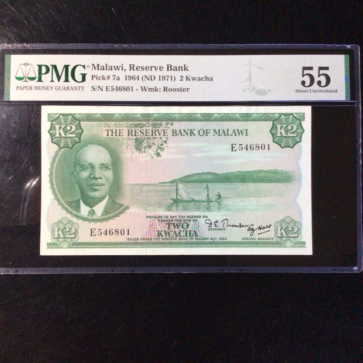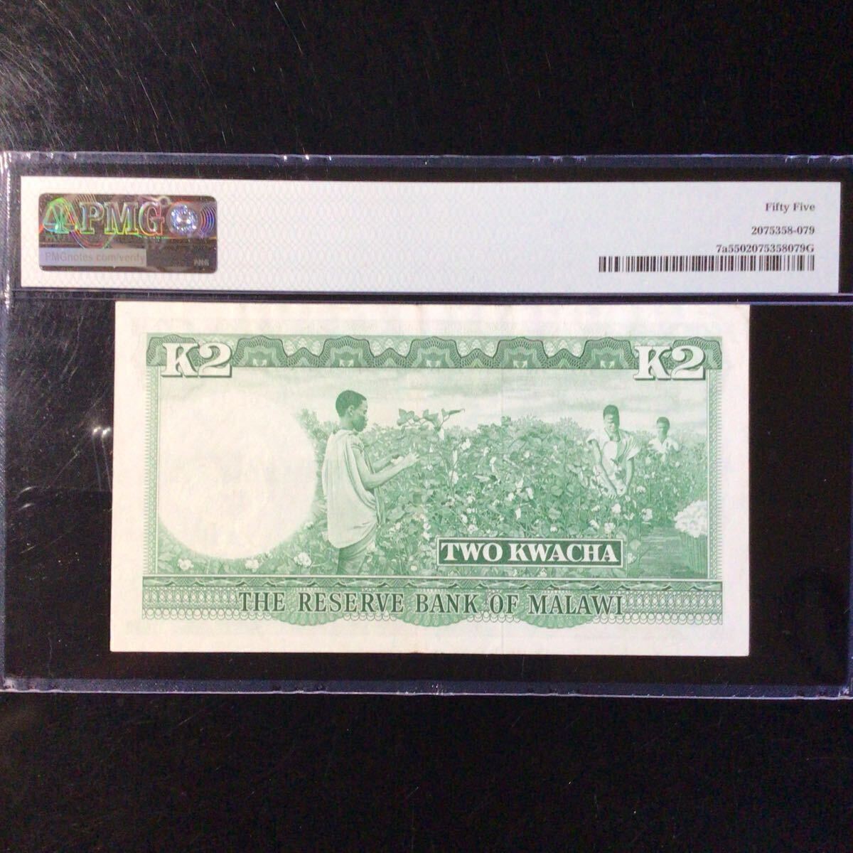 マラウイ 2クワチャ【1964】『PMGグレーディング鑑定 未使用 55』*状態表示については、個人によって多少の違いがありますが画像にて判断し納得して頂ける方のみ入札して下さい。