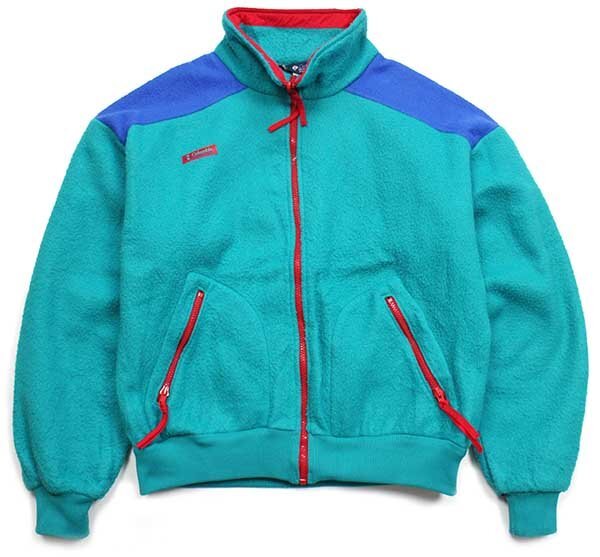 ★90s USA製 Columbiaコロンビア Radial Sleeve マルチカラー 切り替え ライナー フリースジャケット L★オールド アウトドア キャンプ