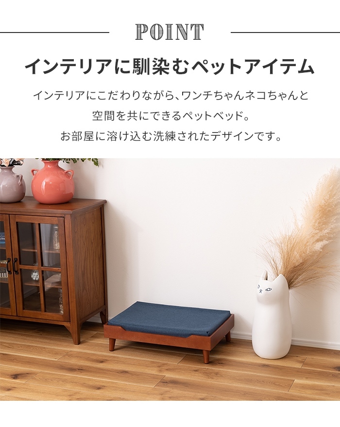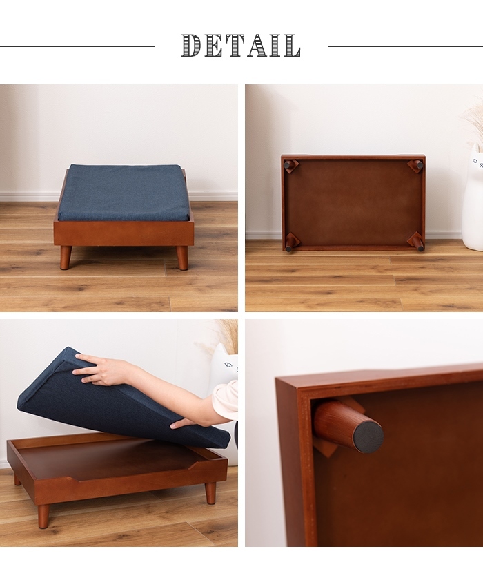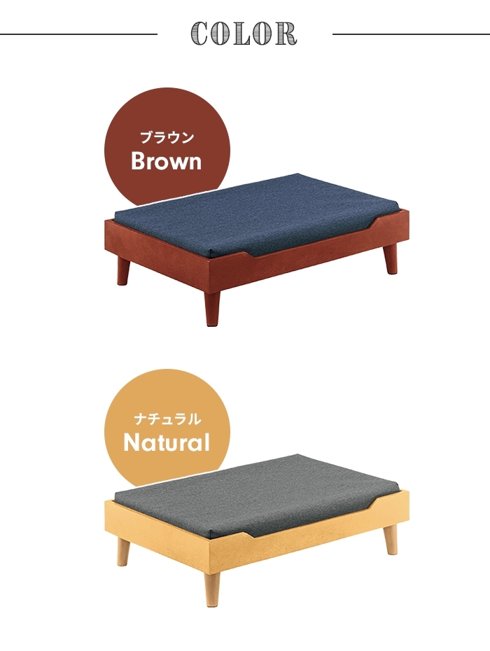 | 天然木を使用したシンプルで上品なペット用のベッド。 クッションはカバーリング式で手洗いができるので、清潔に保つことが出来ます。 程よく厚みのある専用マットレスなので安心です。 工具不要で脚ねじ込みタイプの簡単組立式なので、届いたその日からお使いいただけます。 |
