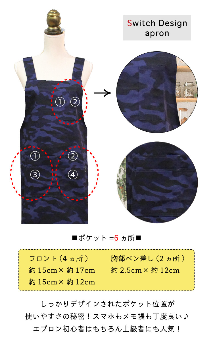 エプロン 迷彩 M おしゃれ 保育士 h型 北欧風 母の日 ギフト 20代 30代 40代 50代 60代 プレゼント