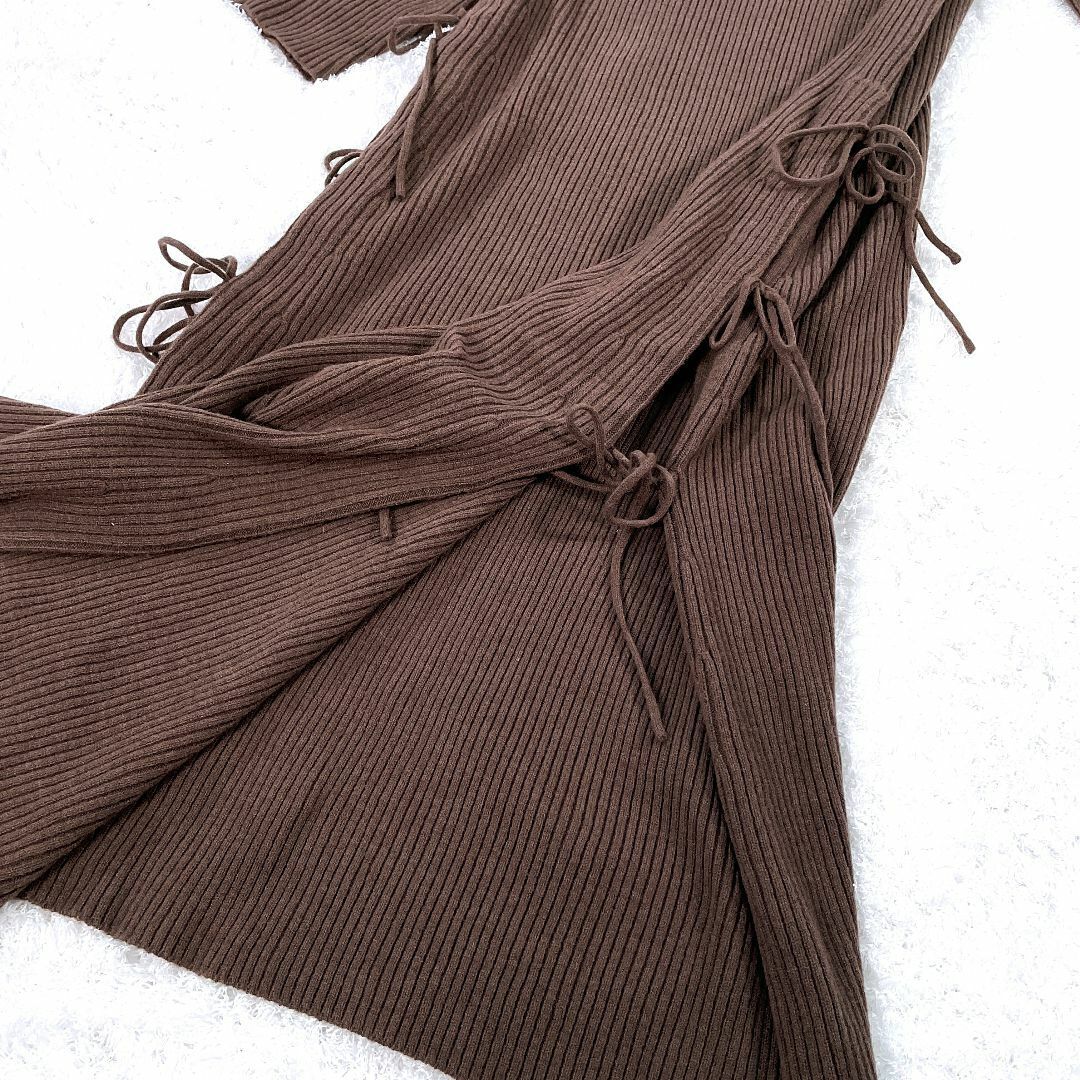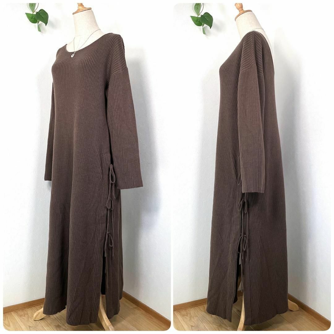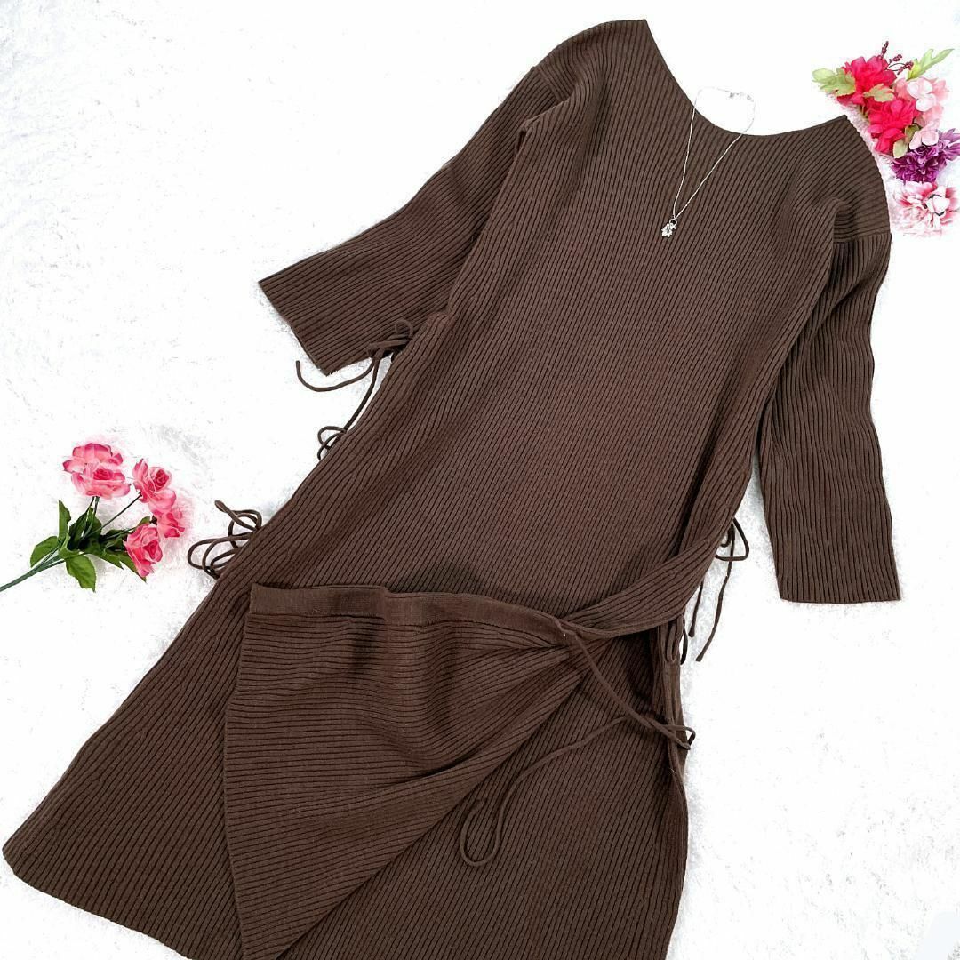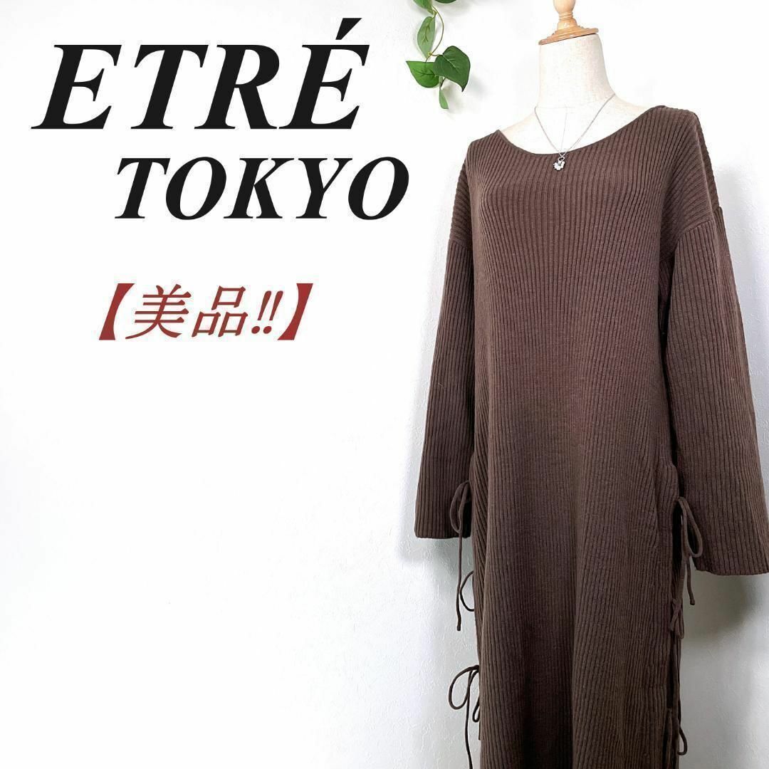 【美品】 ETRE TOKYO リブサイドスリットニットワンピース モカ エトレ トウキョウ ロングワンピース モカ ブラウン