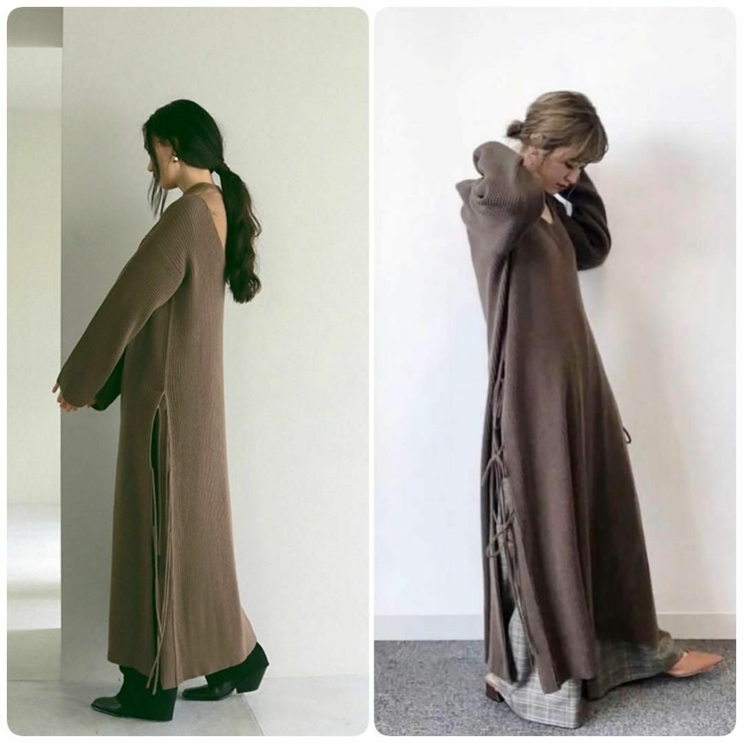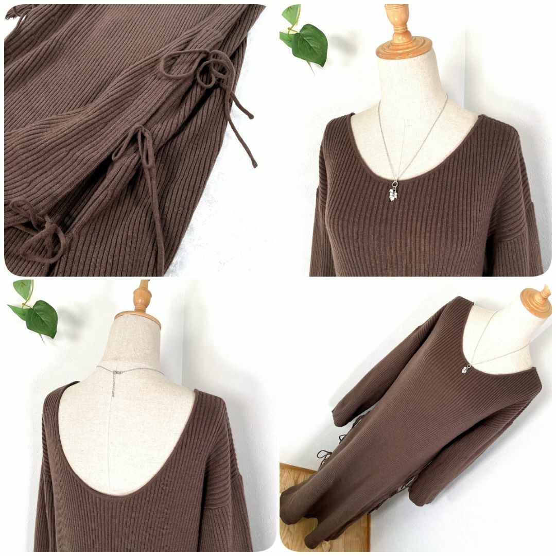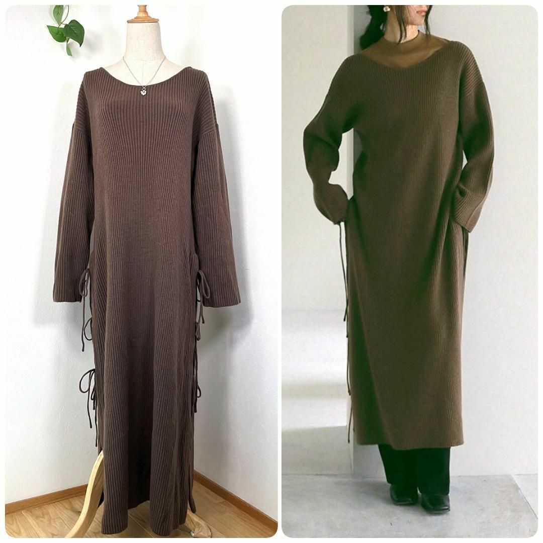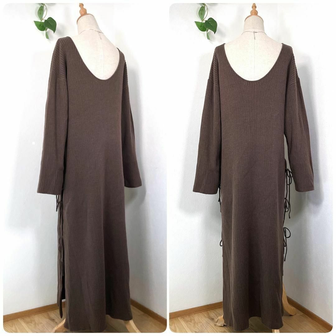 【美品】 ETRE TOKYO リブサイドスリットニットワンピース モカ エトレ トウキョウ ロングワンピース モカ ブラウン