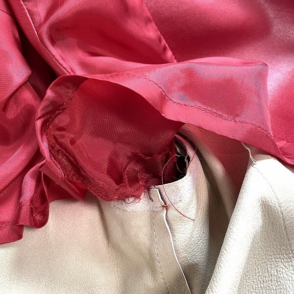 | コンディション備考 | 素材タグに汚れ、全体各所に小さなスレ、首周りに汚れがございます。右内側の縫いどめ、右ポケット上部、左脇裏地の縫い糸にほつれがございます。使用感は見受けられますが、まだまだお使いいただけます。 |