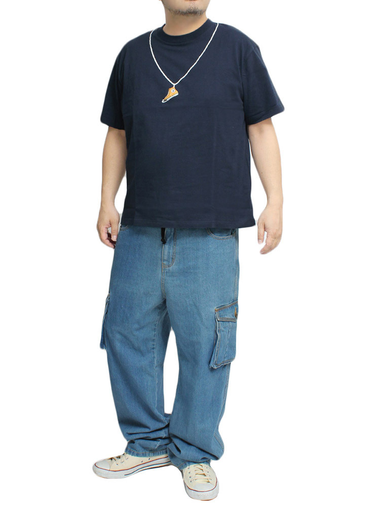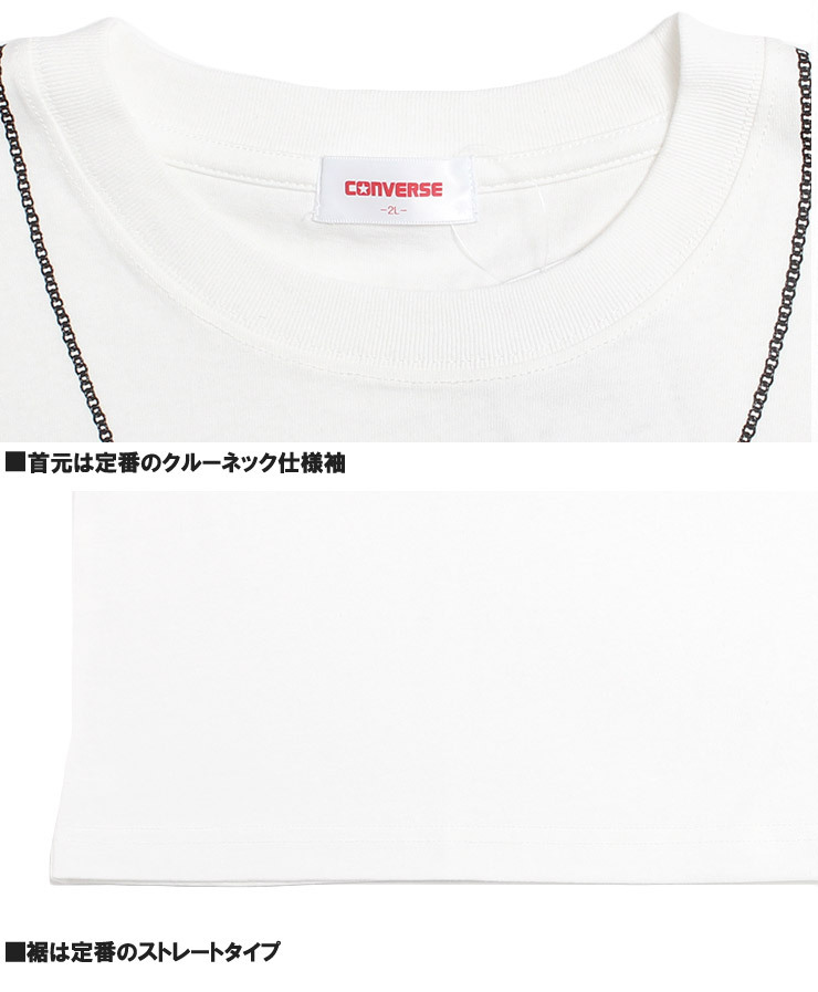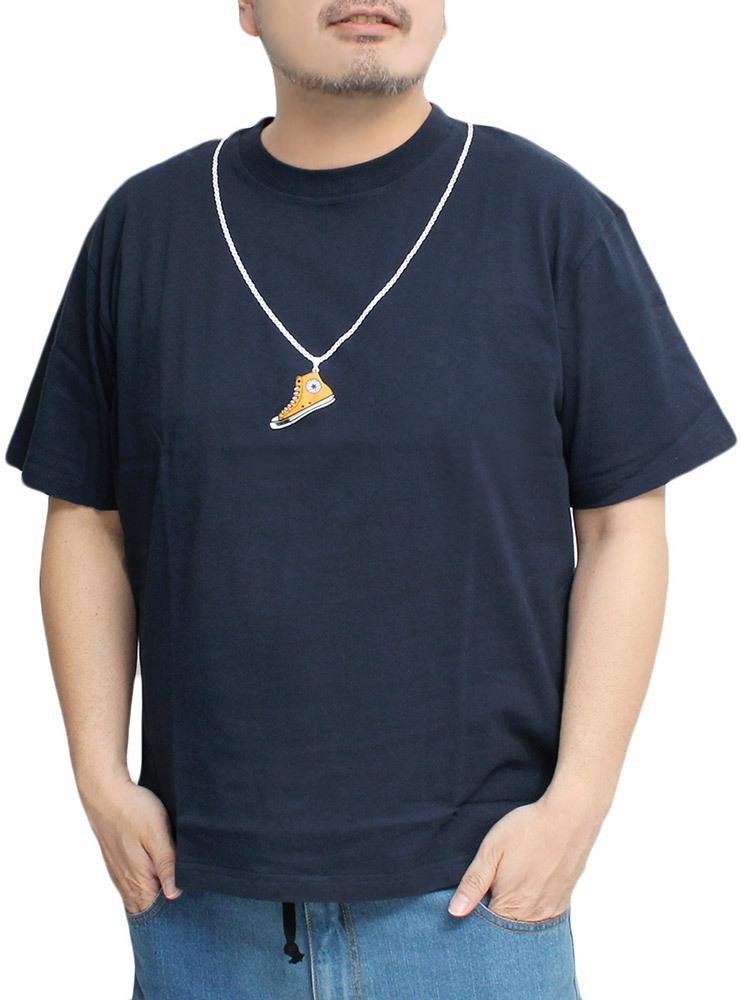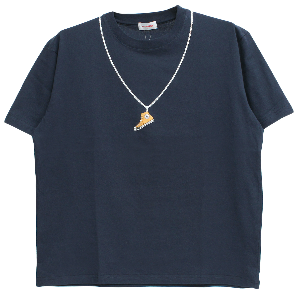 商品名 | 【新品】 4L ネイビー コンバース(CONVERSE) 半袖 Tシャツ メンズ 大きいサイズ シューズ ネックレス サガラ刺? プリント クルーネック カットソー |