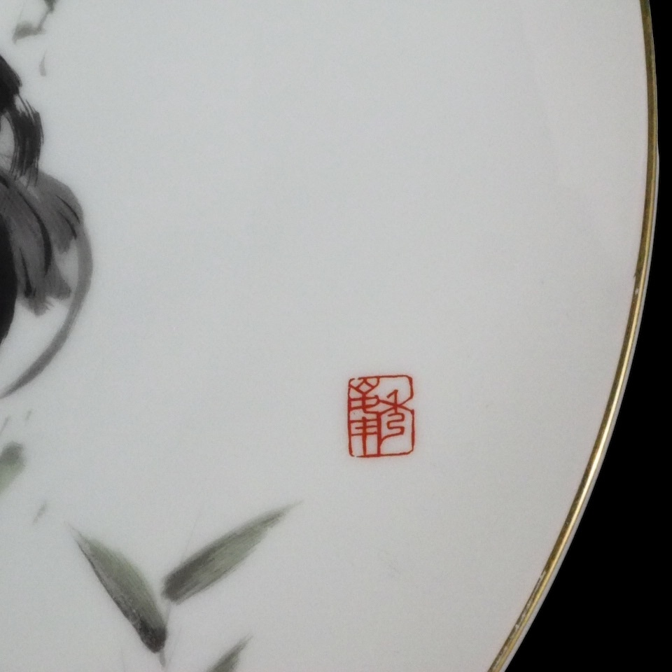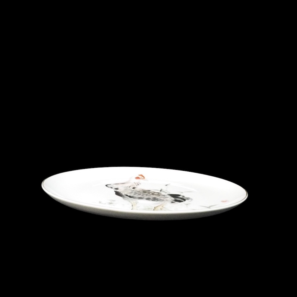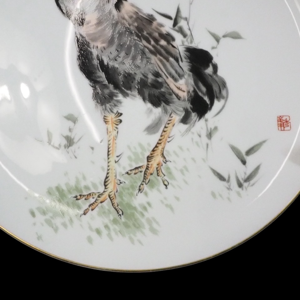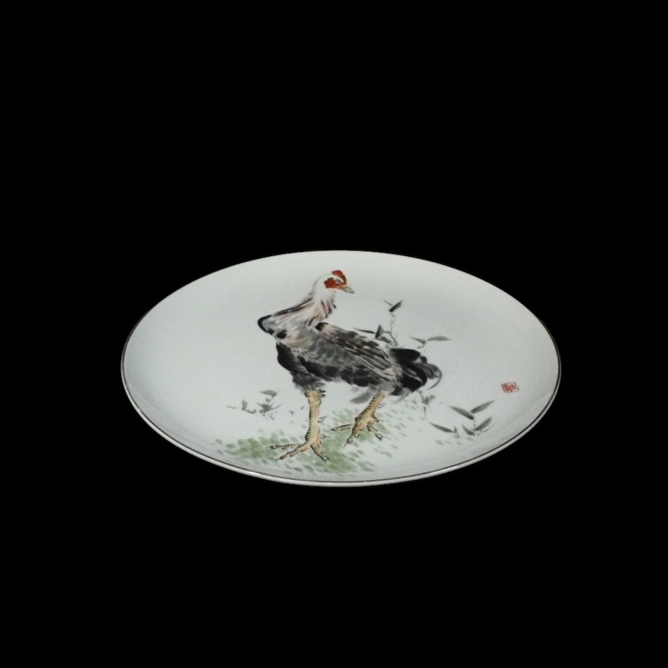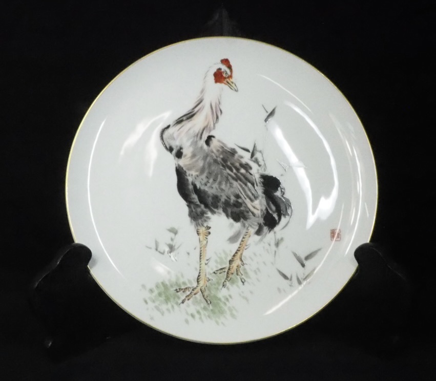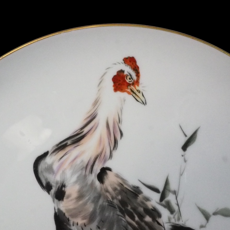 昭和ビンテージ 有田焼 深川製磁 手描き飾り皿「強鶏」干支 鶏 縁起物 皿立て無し 1990年代