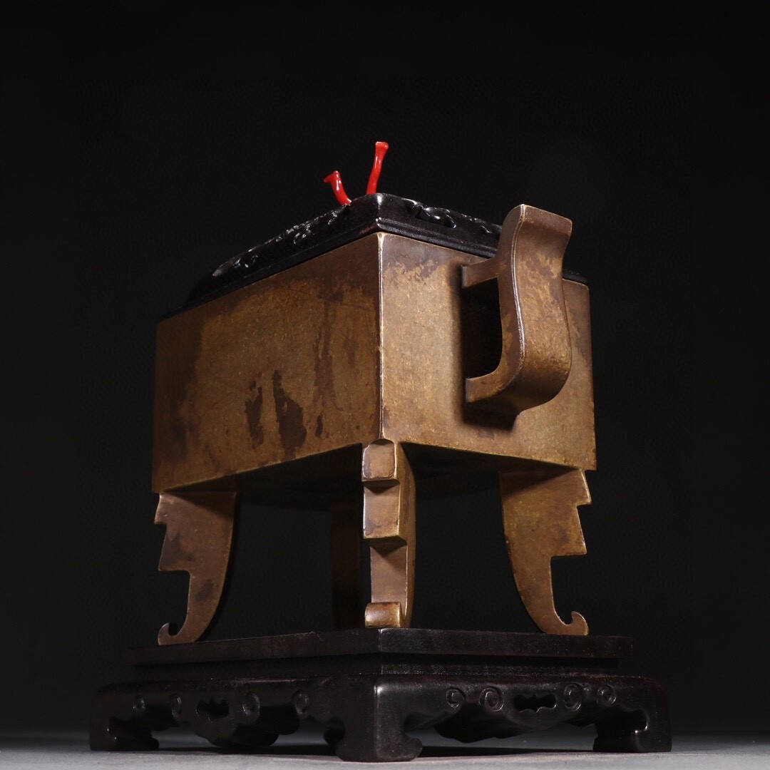 【瓏】古銅鏨刻彫 四足香薰炉 明代 崇禎款 銅器 賞物 古美術 骨董品 香道具 蔵出