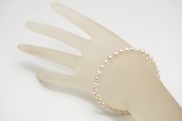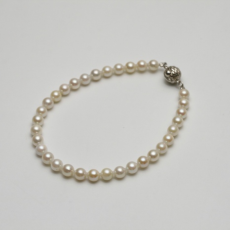 希少なベビーサイズのアコヤ真珠を使用したブレスレットです。 年々貴重になってきたベビーパール。作っている真珠業者も少なくなってきました。 上品なホワイトカラーのお色目が出ています。 留め具はマグネットタイプで取り外しも簡単です。 胸元でなく手元も本真珠の輝きで彩ってみませんか♪♪ 時計と重ね付けしても豪華です! | |