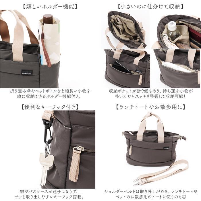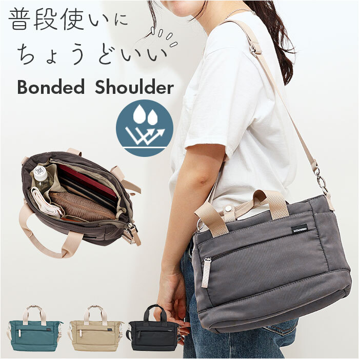 商品説明 | ・・【軽くて使いやすいナイロン素材】 ・デイリー使いにぴったり☆ナイロン製の ボンディングトートショルダー が発売。 ・【軽くて丈夫なナイロン生地】 ・軽さと丈夫さが魅力なナイロン生地を採用。マットな質感でラフ過ぎない仕上がりに。 ・【ミニマルに荷物の収納】 ・長財布やお直し用のポーチなど、マストなアイテムをコンパクトに収納! ・【嬉しいホルダー機能】 ・折り畳み傘やペットボトルなど細長い小物を縦に収納できるホルダー機能付き。 ・【小さいのに仕分けて収納】 ・収納ポケットが計9個もあり、持ち運ぶ小物が多い方でもスッキリ整頓して収納可能! ・【便利なキーフック付き】 ・鍵やパスケースが迷子にならず、サッと取り出しやすいキーフック搭載。 ・【ランチトートやお散歩用に】 ・ショルダーベルトは取り外しができ、ランチトートやペットのお散歩用のトートに使うのも◎ ・【持ち手をまとめる留め具付き】 ・ショルダーとして使ってる時やサッと持ち出したいときに嬉しいハンドルバンド付き。 ・【斜めがけもOK】 ・ショルダーベルトは長さ調節ができ、斜めがけもOK。アクティブに動けるのもポイント。 ・【キャリーオンで旅行や遠征にも】 ・背面にはキャリーケースのハンドルに通せる作りで、旅行や遠征時にも便利◎ ・【水や汚れに強い撥水加工】 ・表面の生地は撥水加工を施し、突然の小雨や汚れが付いても安心♪ ・【使いやすいシンプルさ】 ・ナチュラルカラーのラインナップとシンプルなデザインでコーデを選ばず使えるのもGOOD。 ・【ポケット仕様】 ・メインルーム・・・オープンポケット×2、ファスナーポケット×1、ホルダー×1、キーフック×1 ・フロント・・・オープンポケット×1,ファスナーポケット×1 ・背面・・・ファスナーポケット×1、キャリーオンベルト |