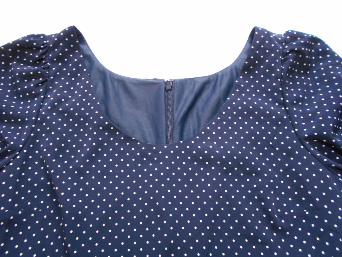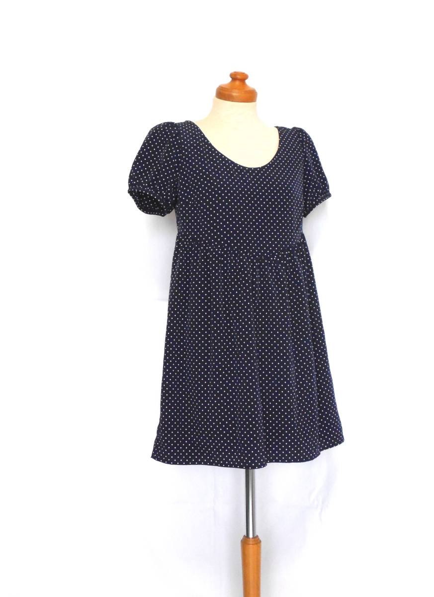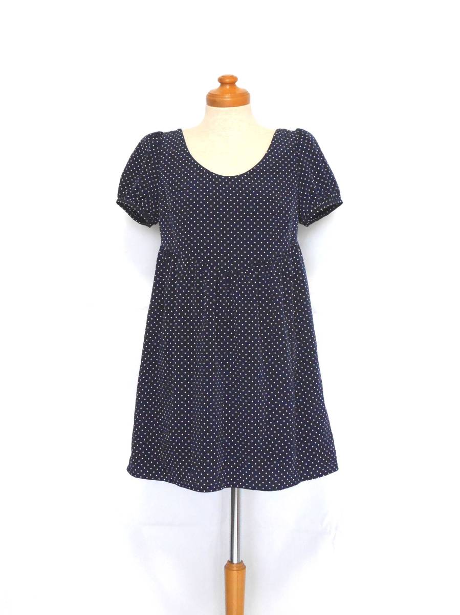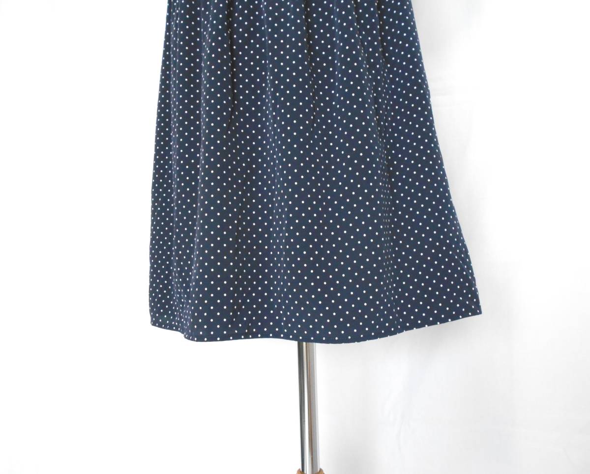 | ネイビーの水玉なので何色にでもあわせられて着まわしの幅が広いです。 | ||