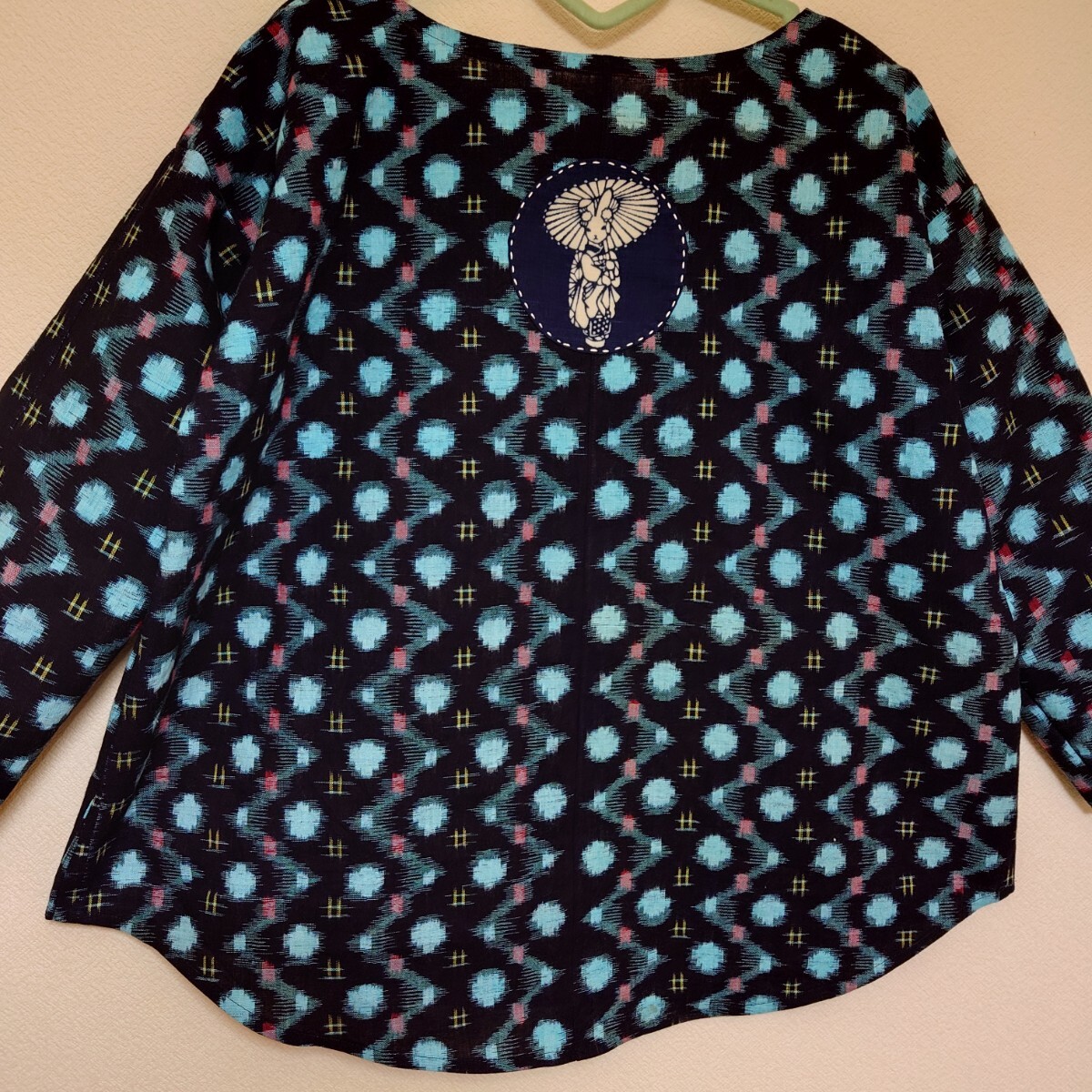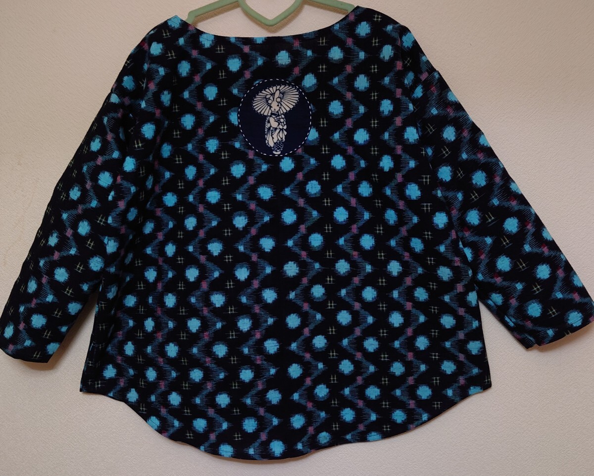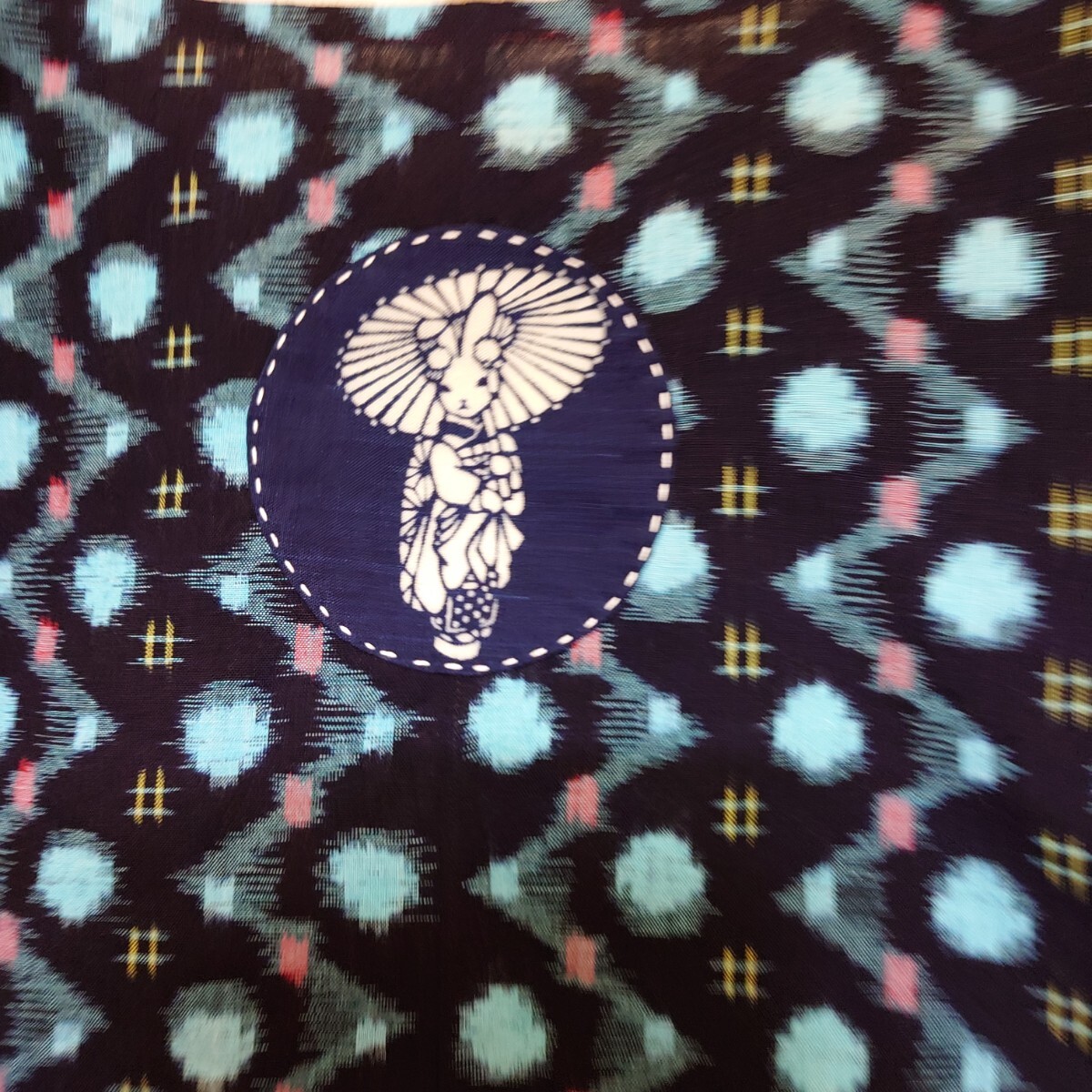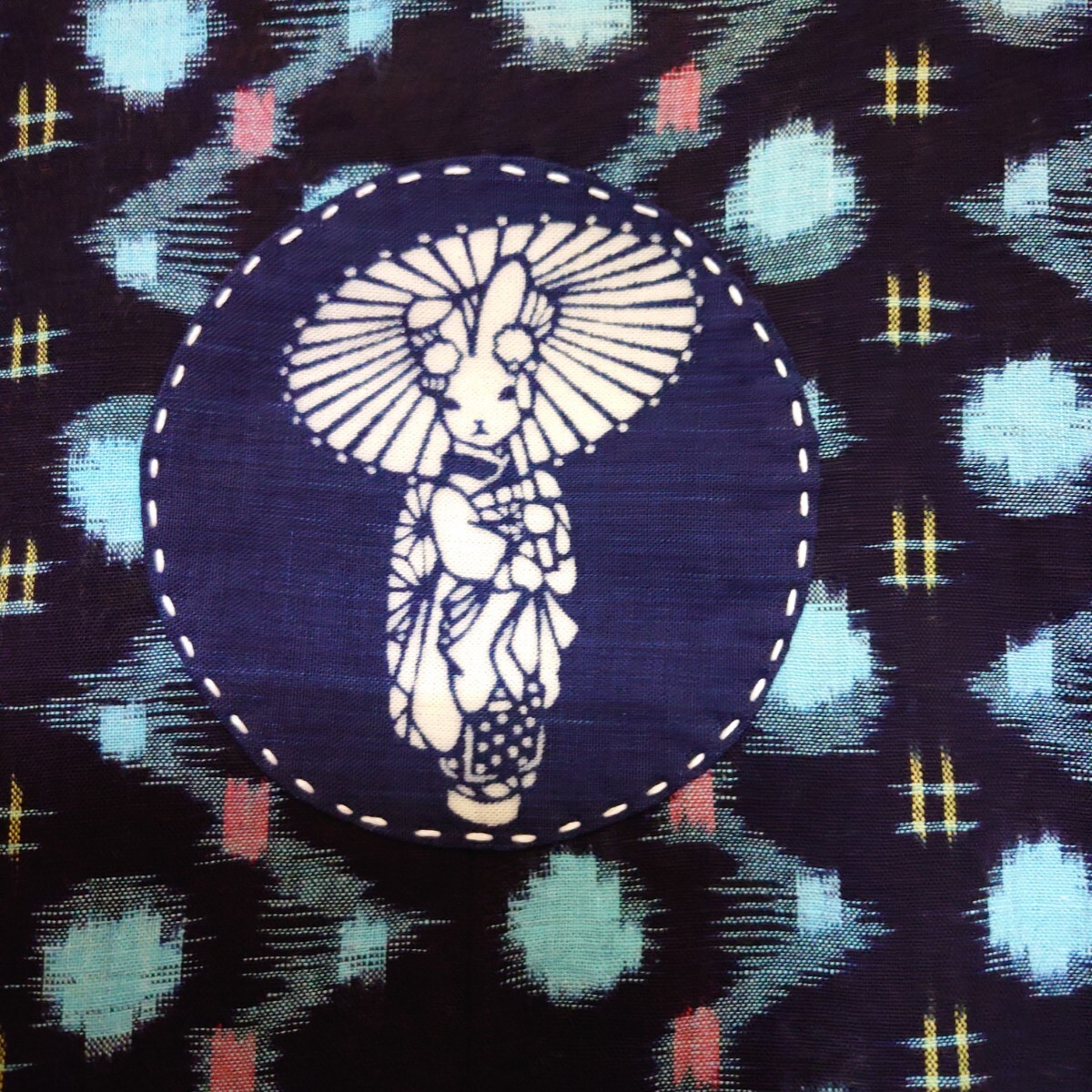 背中には型染めの傘をさした可愛らしいうさぎのパッチワークを手縫いでチクチクしました。