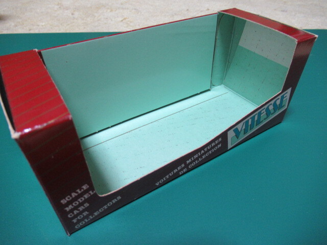 ビテス ポルトガル製 1/43 専用小箱になります。製品本体,ケースはありません。写真の外装小箱のみになります。ビテスの他の車種プラケース製品にも対応できます。コレクター向け 未使用保管品ですが経年のスレ、傷、薄汚れあります。値札張り済み、はがし跡、有るものも含まれます。経年の汚れあります。現状渡しです。事前ご了解いただける方のみお願いします。経年のものの出品ですので事前ご了解いただける方のみお願いします。状態が気になる方、神経質な方の入札は御遠慮下さい。20年以上前のものになりますので経緯ご存知の方のみお願いします。事前ご了解いただける方のみお願いします。見落としの場合有りますので事前ご了解ください。画像に在るものが全てですが気になる事がある方は事前に入札前に質問お願いします。落札後はノークレーム・ノーリターンでお願いします。発送は折りたたみ発送でレターパックプラスになります。以外の発送はできませんのでよろしくお願いします。何点でも同梱できます。商品状態は画像でご確認の上ノークレーム、ノーキャンセルでお願い致します。