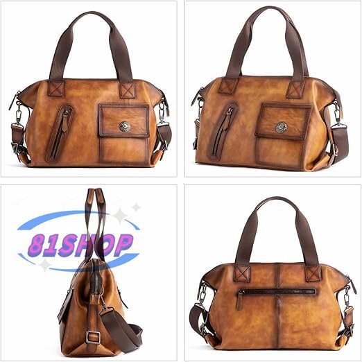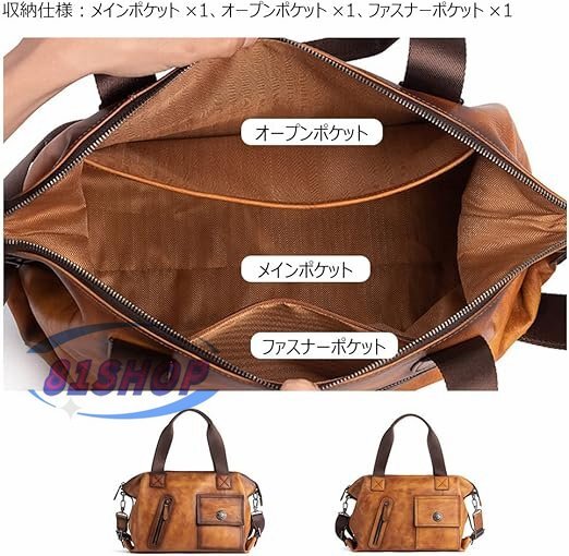 「81SHOP」アンティーク風合い鞣し天 然 牛革 ビジネスバッグメンズ 2way ショルダー 手提げバッグブリーフケース15.6インチPC対応 旅行 出