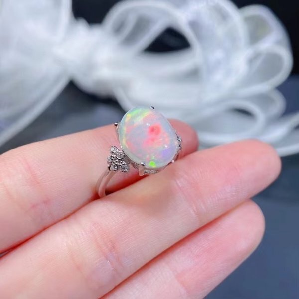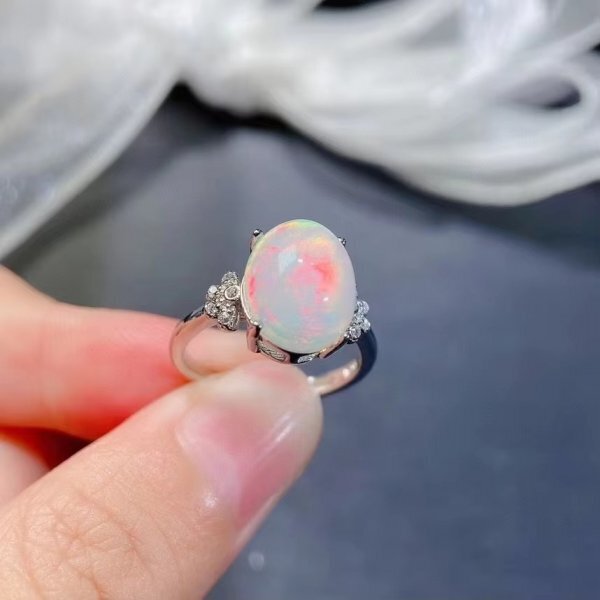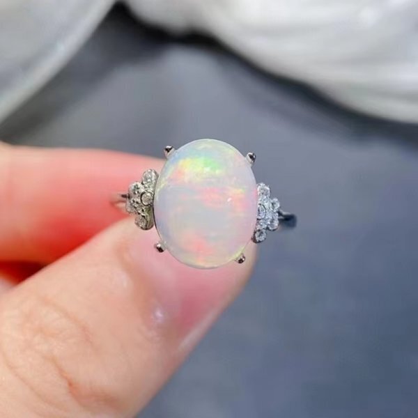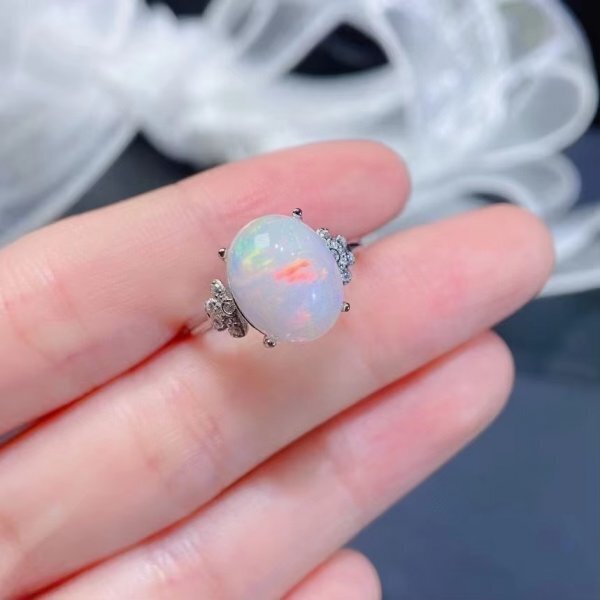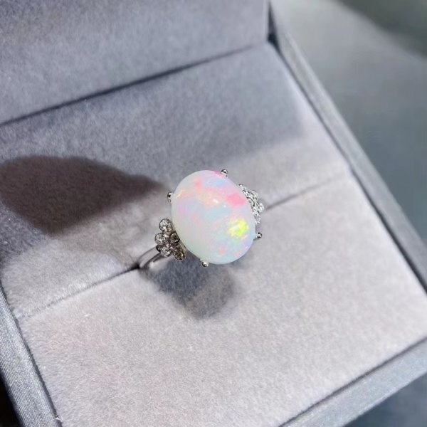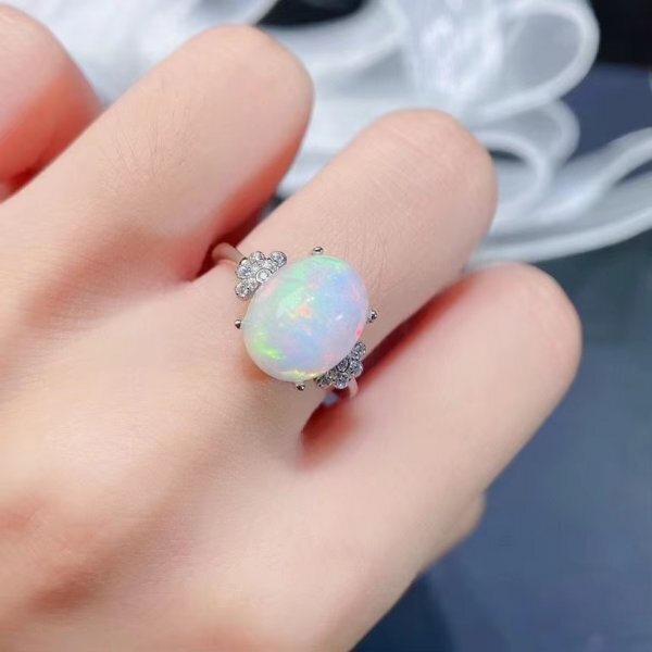 ナチュラルホワイトオパールリング、2ct、9×11mm、証明書