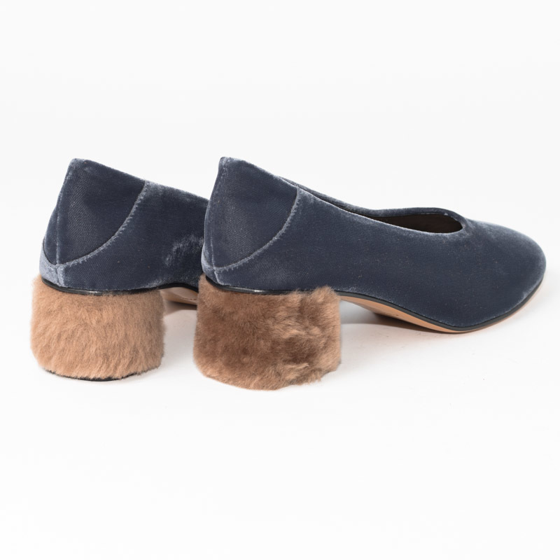 ベルベット ファー シープ ファーヒール ブルーベルベット