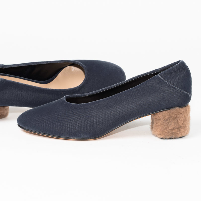 ほんの少し深めなラウンドトゥとヒールのシープファーがトレンド感を感じさせます。