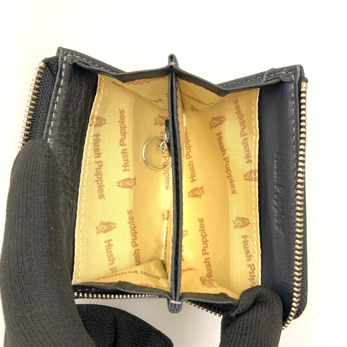 〇〇 HUSH PUPPIES ハッシュパピー 小銭入れ コインケース ブラック x ブルー やや傷や汚れあり
