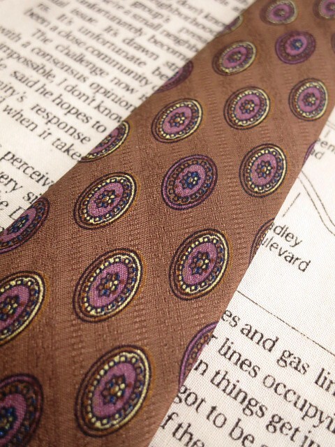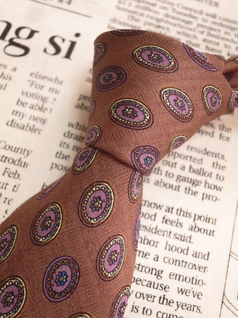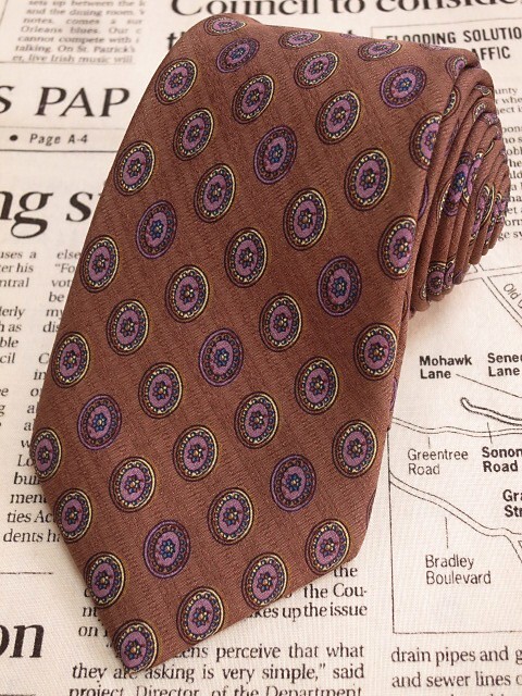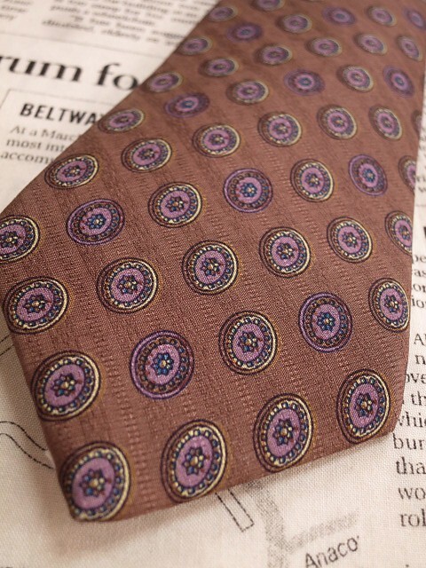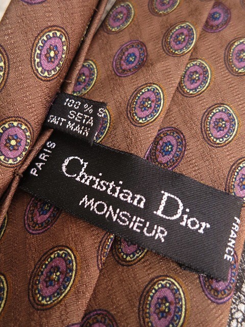 大人な色合いでオシャレ! クリスチャンディオール Christian Dior 微光沢 ネクタイ シルク100% パターン柄 茶系 ブラウン系 S-005750 | ||