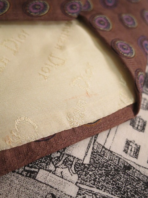 寸法(平置き) 大剣先幅約 8cm 全長約 142cm フランス製 シルク100% 大剣裏に少し汚れがあります。 フロント首回りから中程にかけて数カ所汚れがあります。 大剣サイドに角擦れがあります。 一部を撮影してあります。 御理解の上、御入札を御願致します。 | ||