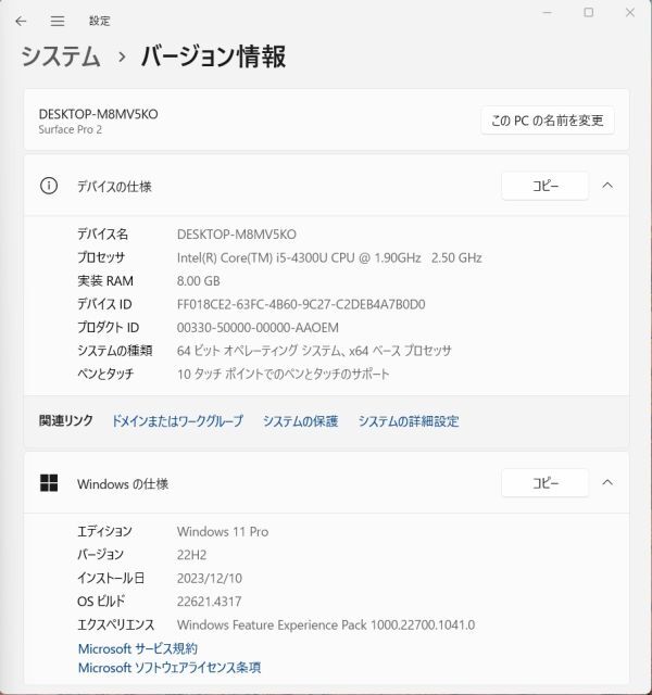 ■現状出品■Surface Pro2/ Core i5/8GB/256GB/Windows11 |