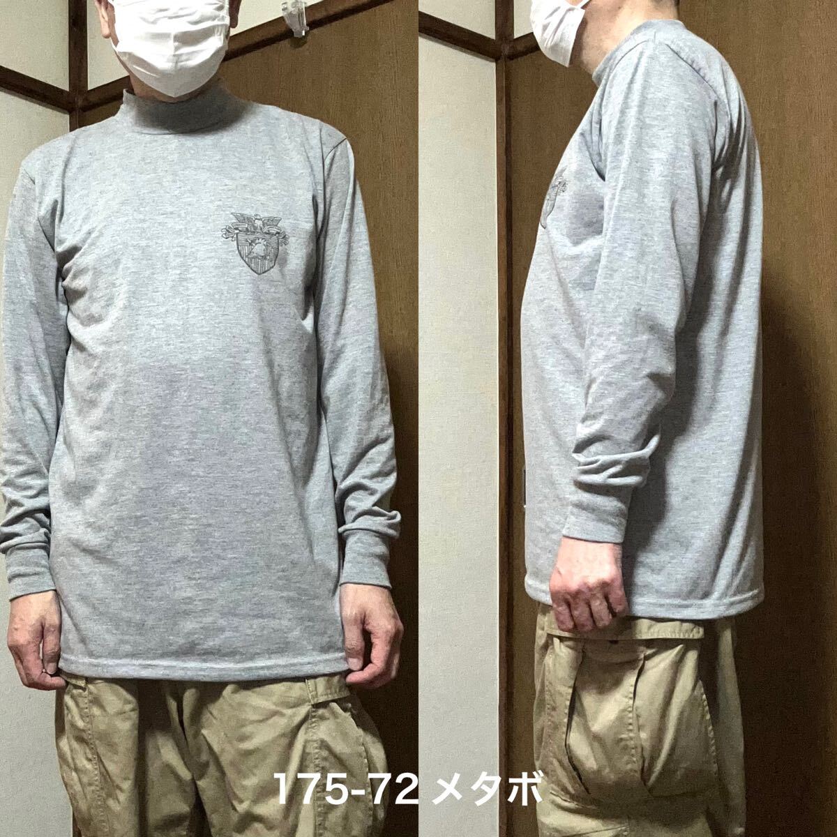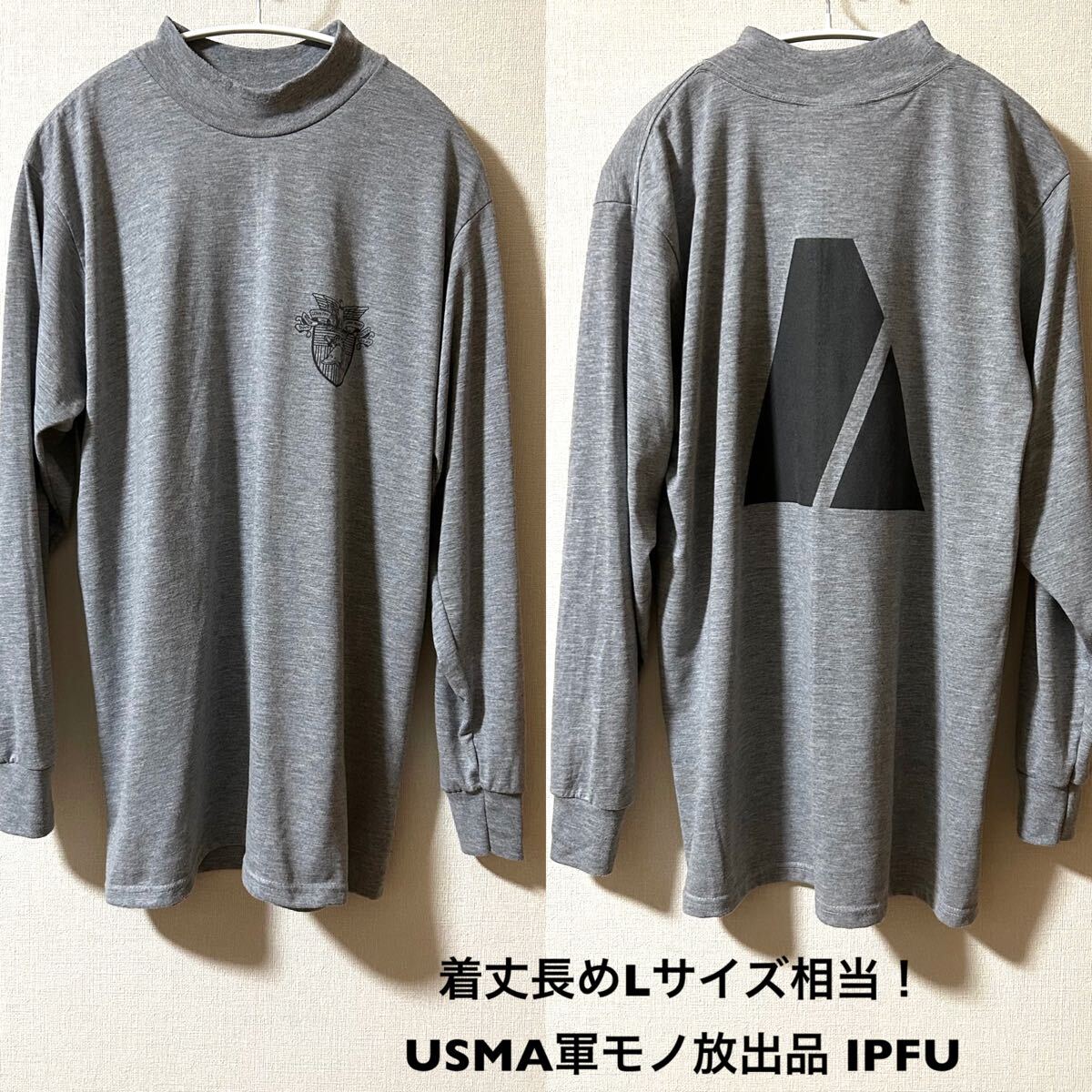 着丈長めLサイズ相当!USMA古着長袖リフレクターTシャツ ハイネック グレー ミリタリー 軍モノ 放出品