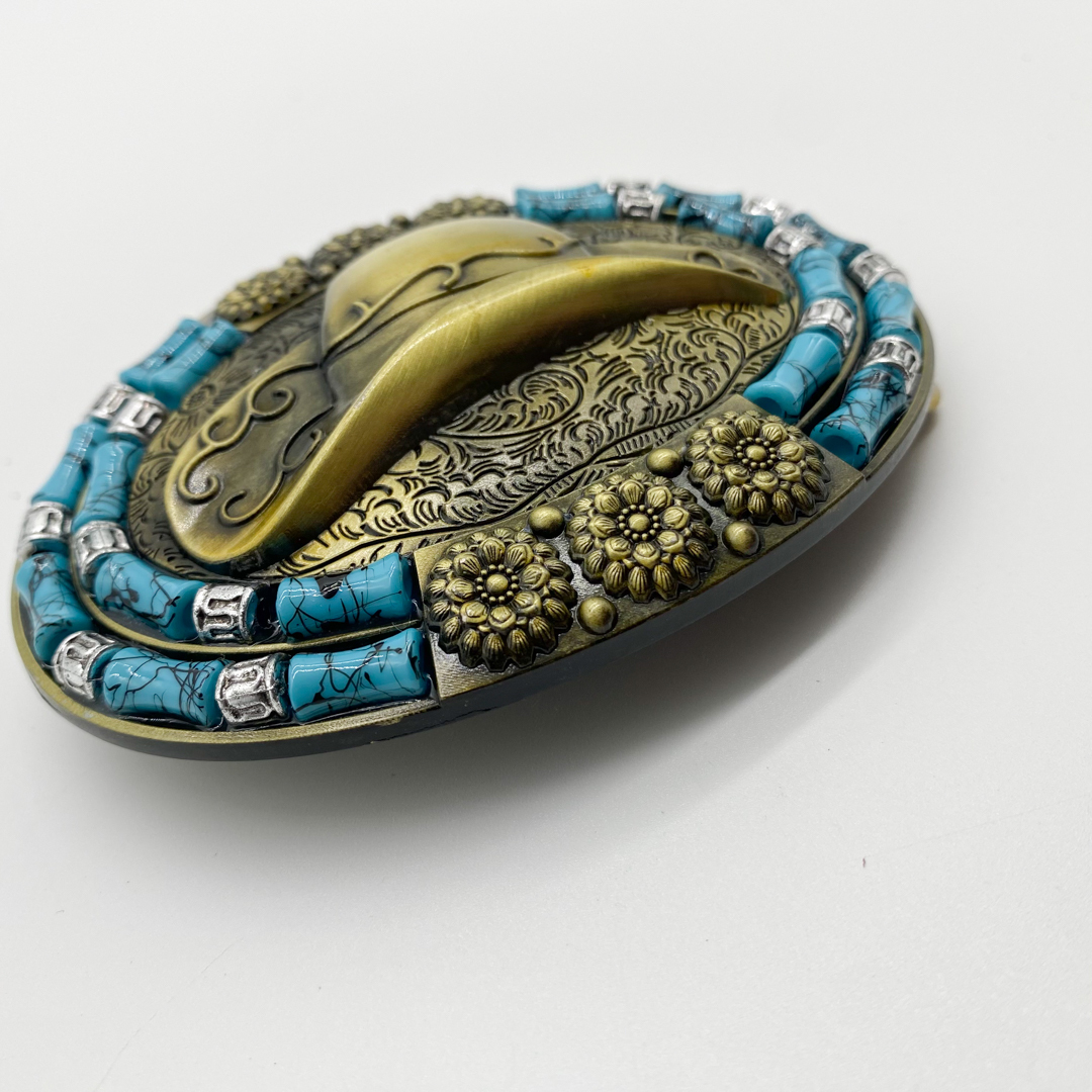 ■新品■ 送料無料 匿名配送 ベルトバックル のみ メンズ レディース カジュアル ヴィンテージ ターコイズ系 ターコイズ帽子 金ゴールド