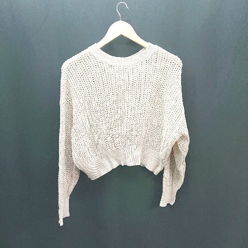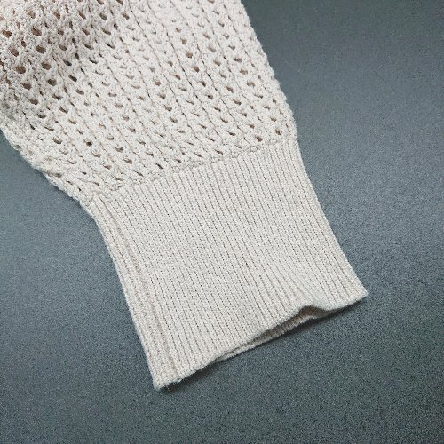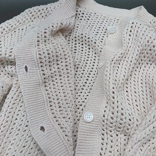 ◇ LOWRYS FARM ローリーズファーム メッシュ バックボタン コットン100% 長袖 ニット サイズF ベージュ レディース E