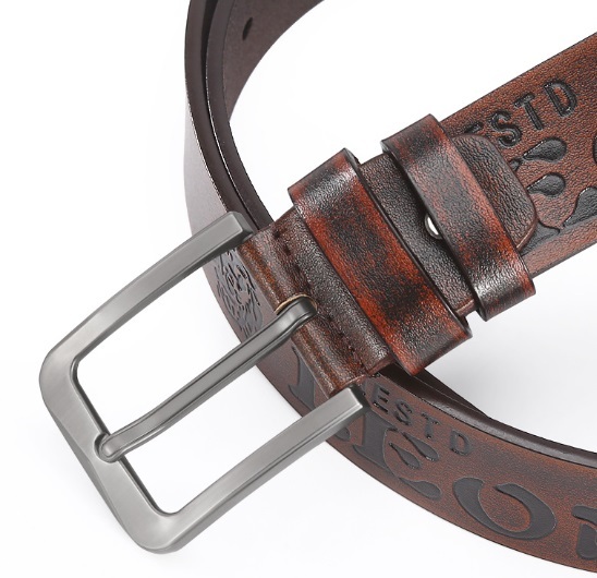 新販売 ピンバックル式 PUレザー ベルト ビジネス風 メンズ 合金バックル 紳士ベルト 茶色