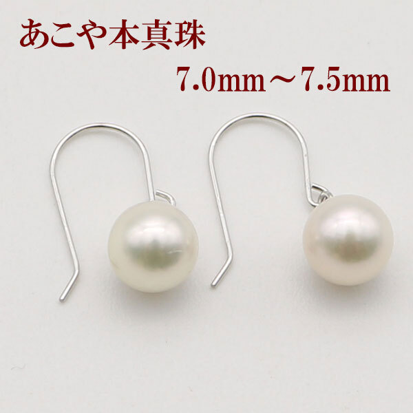 あこや真珠7.0-7.5mmのホワイトゴールドアメリカンピアスです。 |