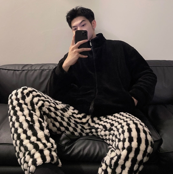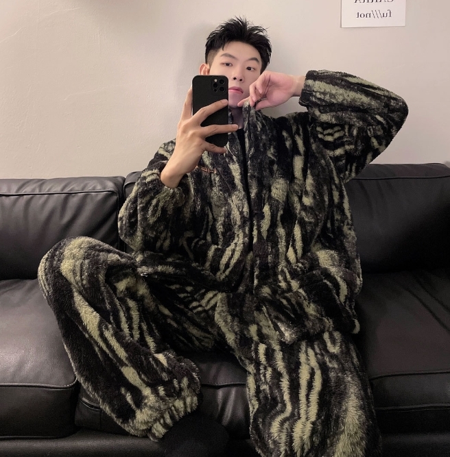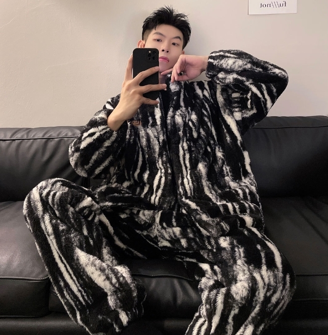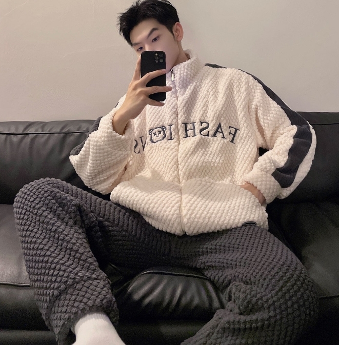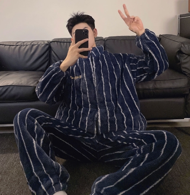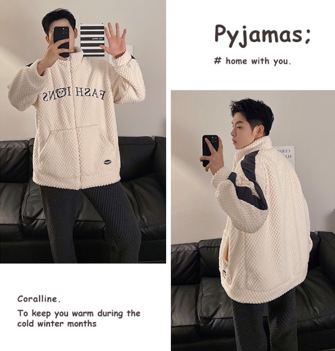 ファッション パジャマメンズ ルームウエア モコモコ 寝間着  前開き 上下セット襟たち 防寒 冬物 厚手 部屋着 X700