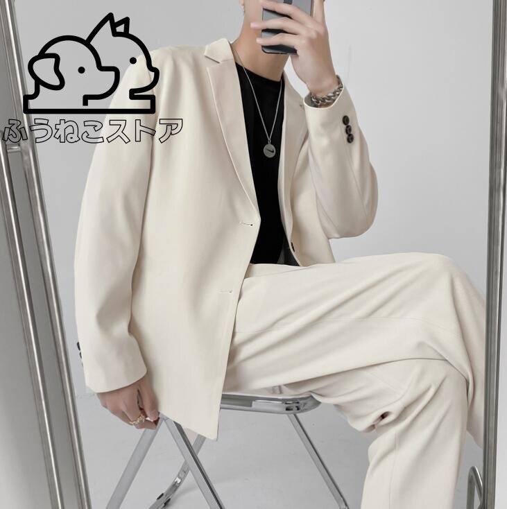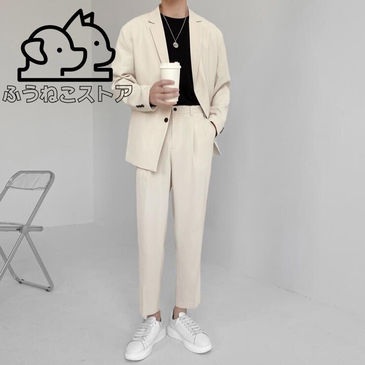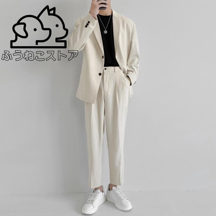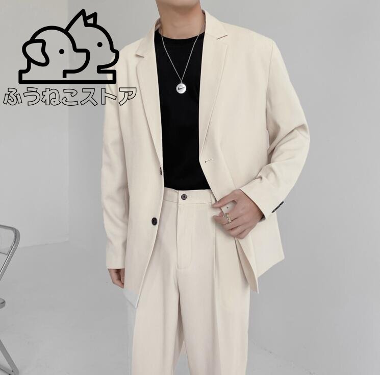 新品 二点セットアップ カジュアルスーツ メンズ スリーピース ジャケット パンツ 上下セット シングルスーツ クリーミーホワイト
