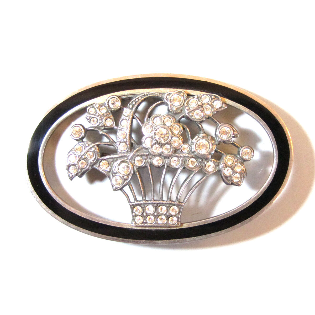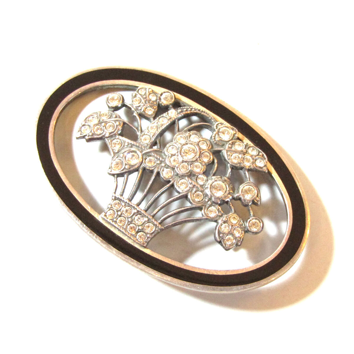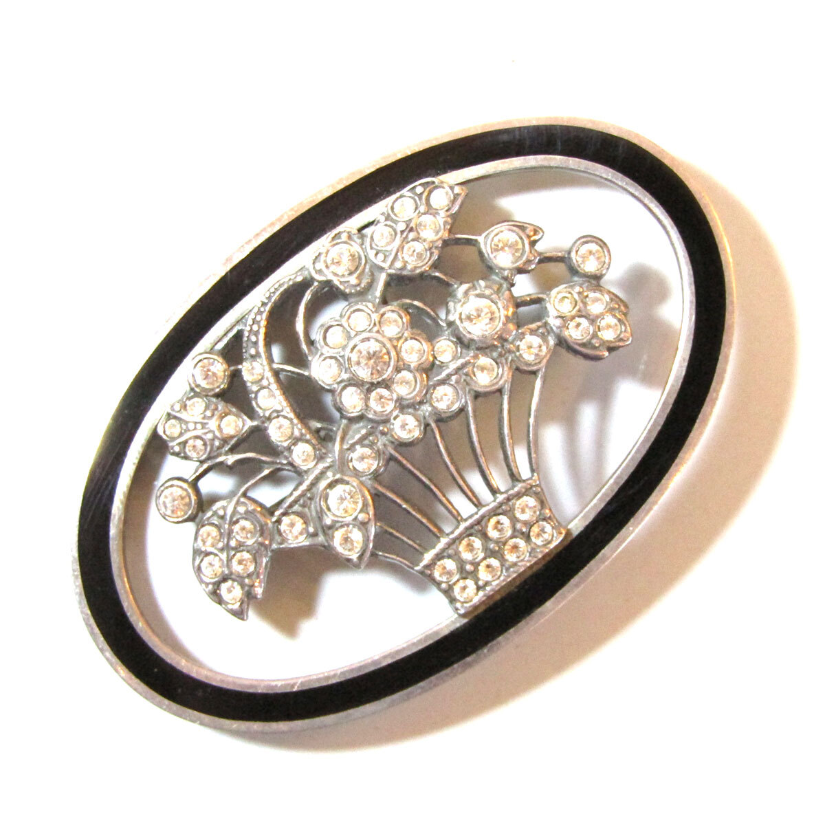 ★オニキス / フラワー / 花 / バスケット / SILVER / シルバー / 925 / スターリング / sterling / ヴィンテージ / ブローチ