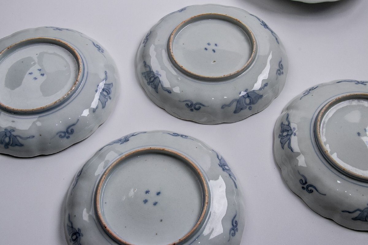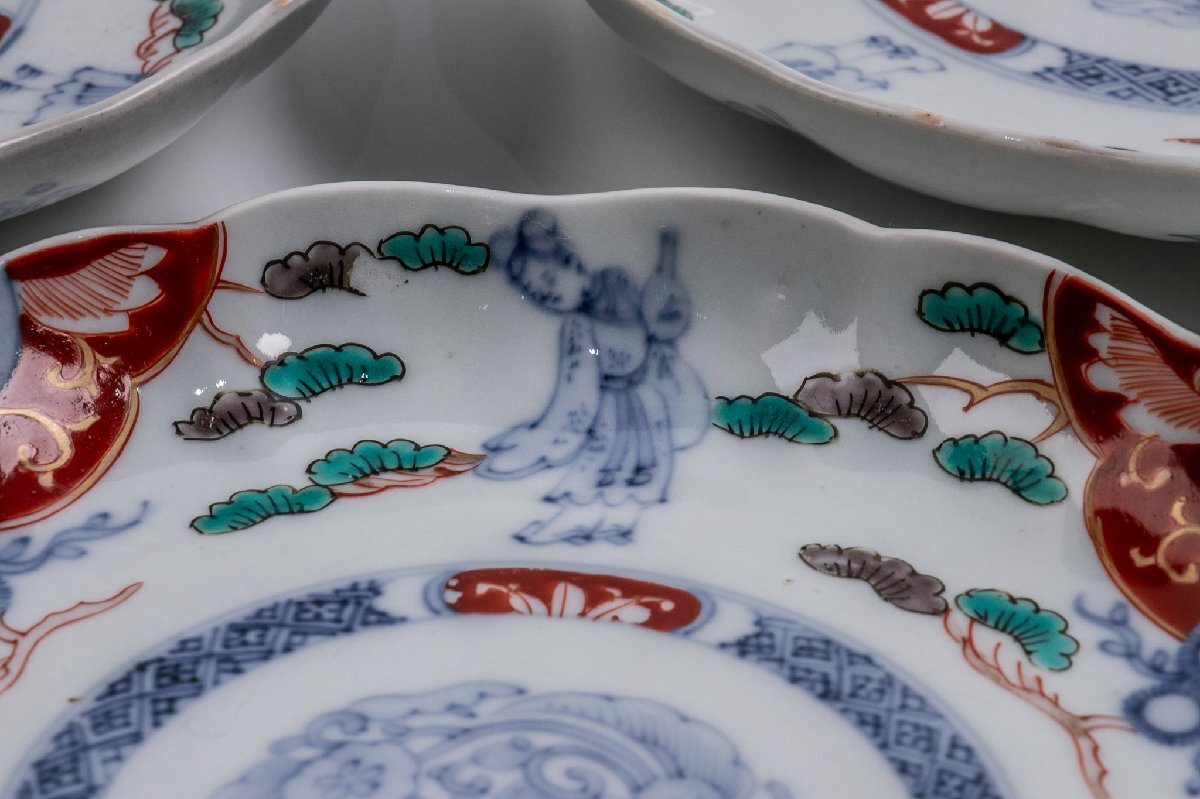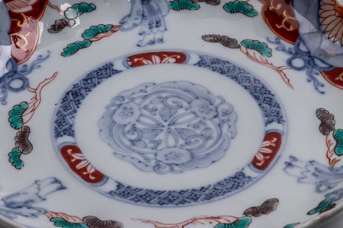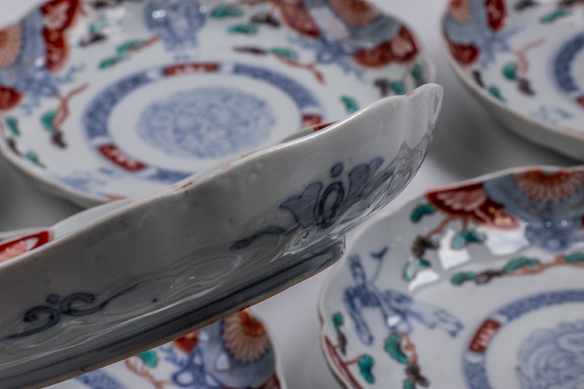 【うつわ】 古伊万里 染錦草花人物文七寸皿 8客 明治時代 E825C バラ売り可能です 古美術 骨董 古玩 陶芸 日本料理 懐石 料亭