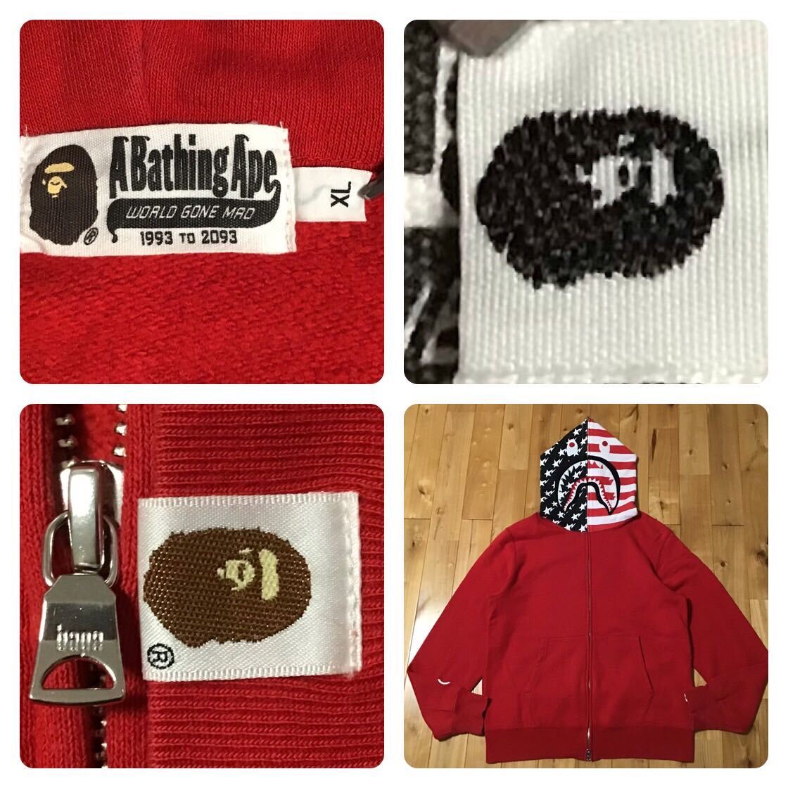 a bathing ape 星条旗シャークパーカー レッド XLサイズ です★