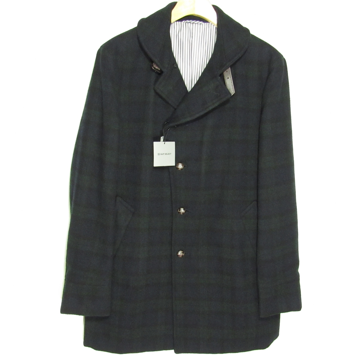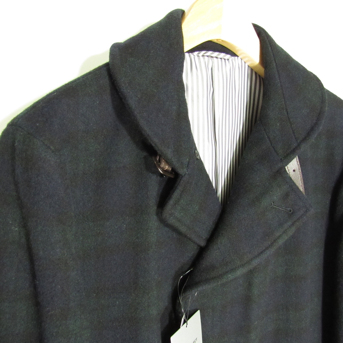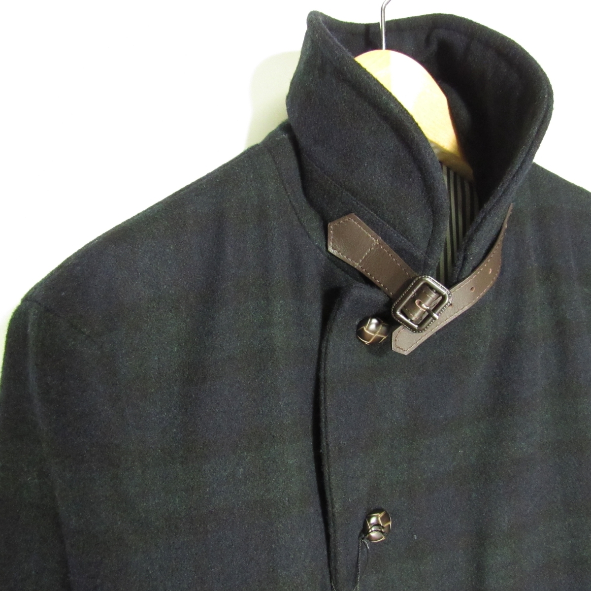 表地-WOOL70% POLYESTER25% NYLON3% ACRYLIC2% / 皮革部(衿ベルト)-COW NAPPA / 胴裏地-POLYESTER100% / 袖裏地-POLYESTER100% ブラックウォッチ |