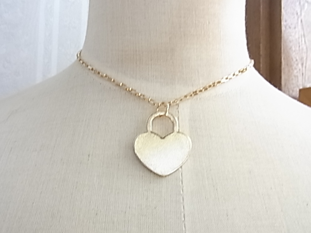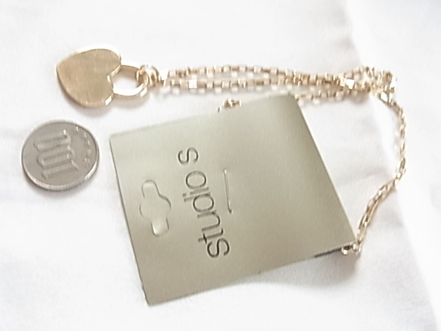 未使用品 台紙付き Studio S 金色 ゴールドトーン プレートたいなハートのトップモチーフがガーリー ネックレス△△