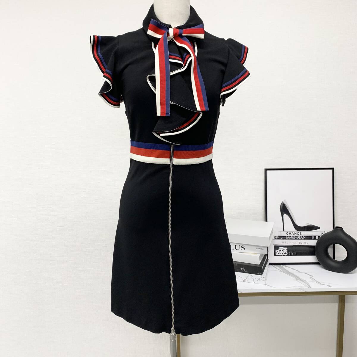 9903 グッチ ワンピース フリル ノースリーブ ジップ ブラック