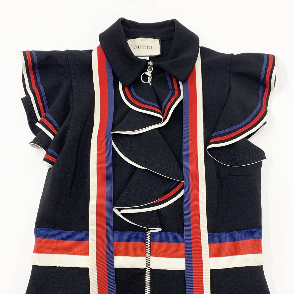 グッチ ワンピース フリル ノースリーブ ジップ ブラック