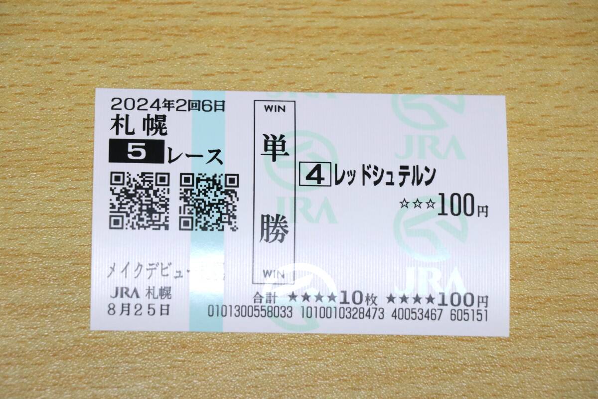 レッドシュテルン メイクデビュー札幌 5R (2024年8/25) 現地単勝馬券(札幌競馬場)です。気に入って頂けた方の落札を心よりお待ちしております。