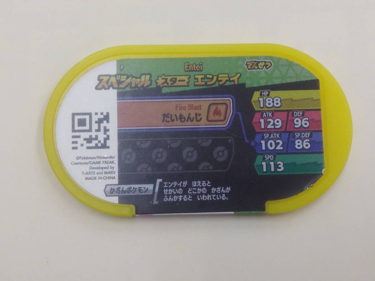 ◎出品物 ポケモンメザスタ スペシャルタグ:エンテイ -------------- ◎状態 中古 目立った傷や汚れなどは無し -------------- アーケードゲーム「ポケモンメザスタ」の タグの出品となります。 調べたところ、現在はポケモンメザスタは サービス終了しているとのことで、こちらの タグを使う事が出来るのかどうかは不明 です。ゲームとして遊ぶというよりは、 コレクションとしてお考え下さいますと 幸いです。 目立つような傷、汚れは見られないように 思いますが、基本的には遊びに使用した であろう中古品である物ということを ご了承ください。