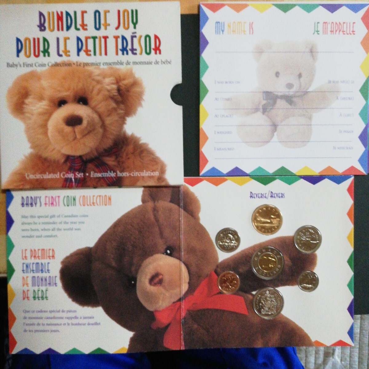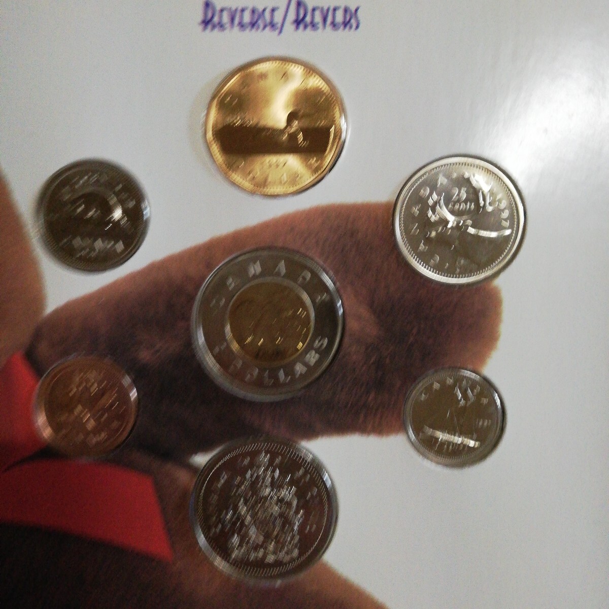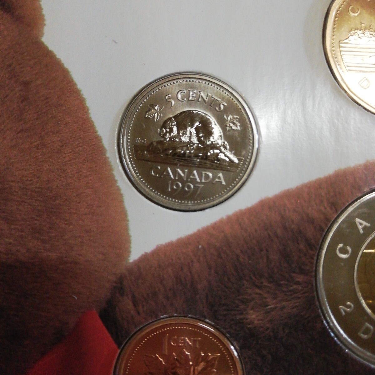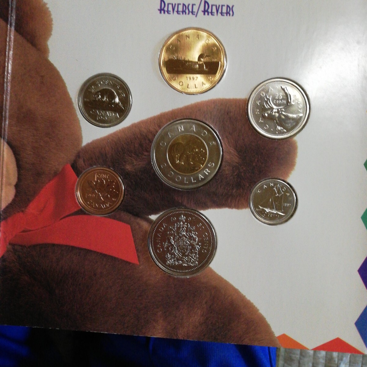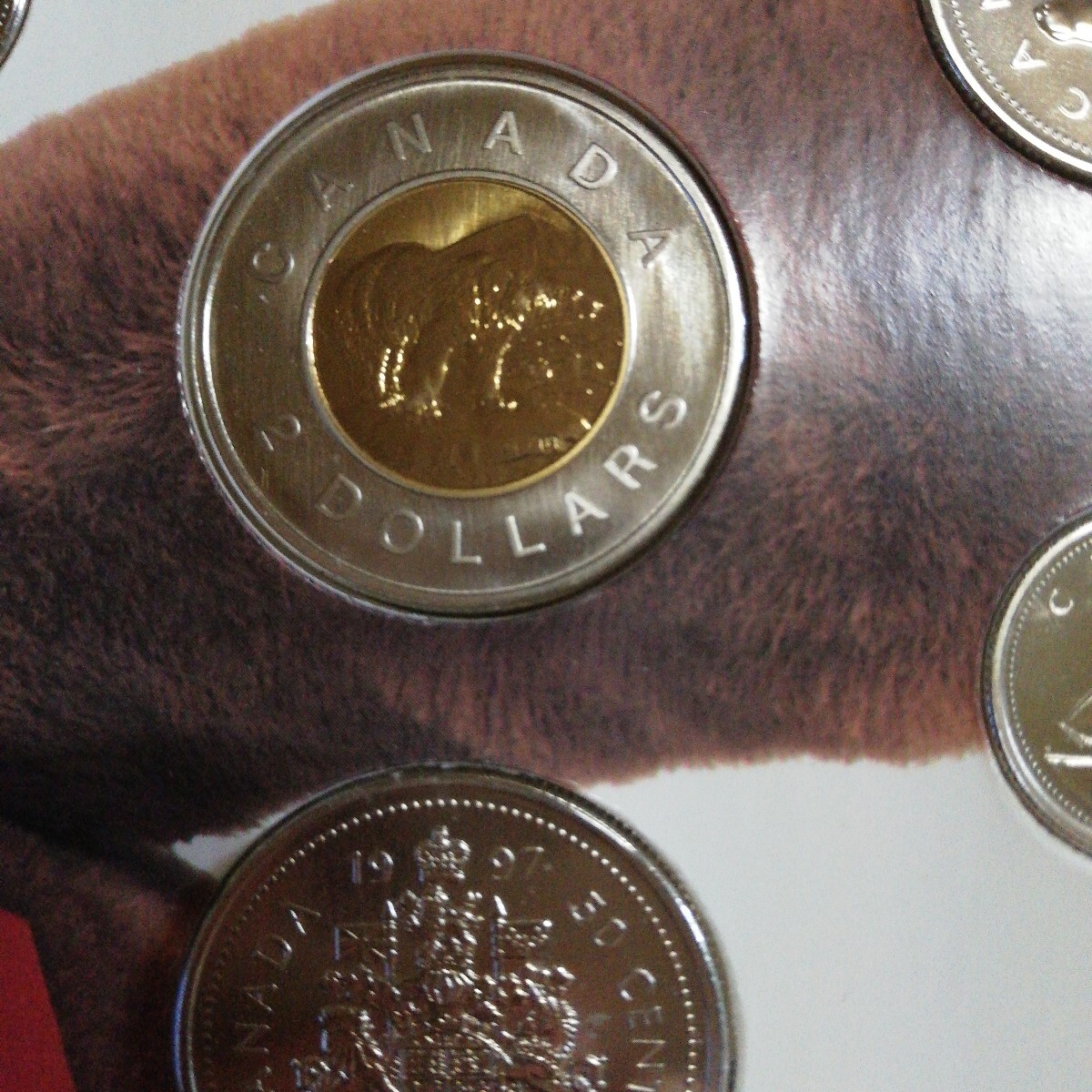 Canada Royal mint カナダ造幣局が1997年に発行した子どもの出生記念祝として贈るカナダコイン、2ドル、1ドル、50セント、25セント、10セント、5セント、1セント 全て1997年発行プルーフコインセット。限定販売。1997年生まれの方へのプレゼントに!
