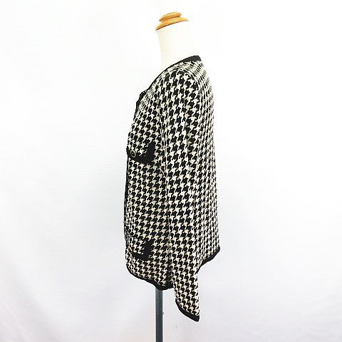 レストローズ L'EST ROSE ニット ノーカラージャケット 長袖 千鳥格子 ベージュ×ブラック ※EKM レディース