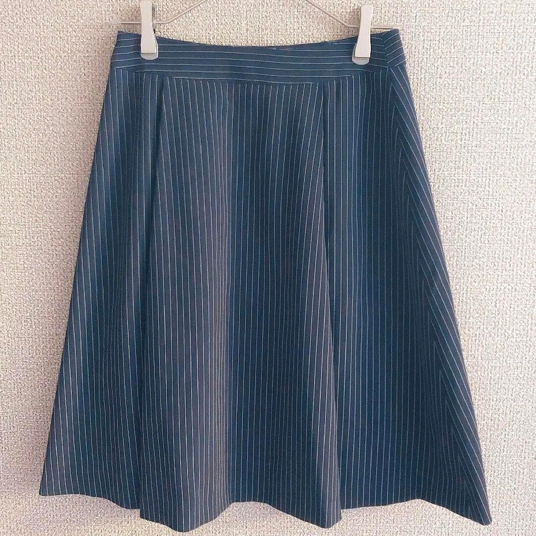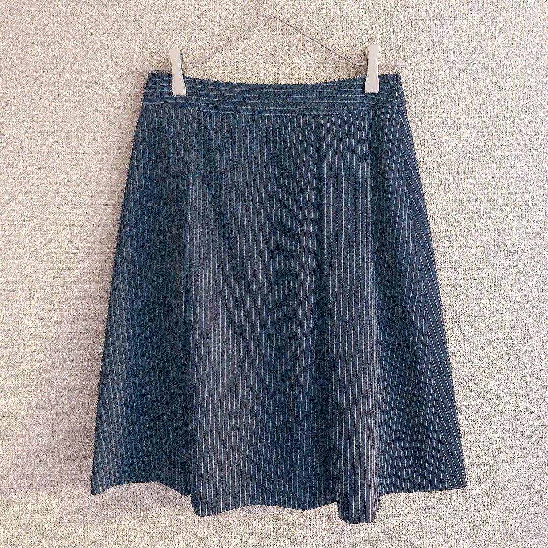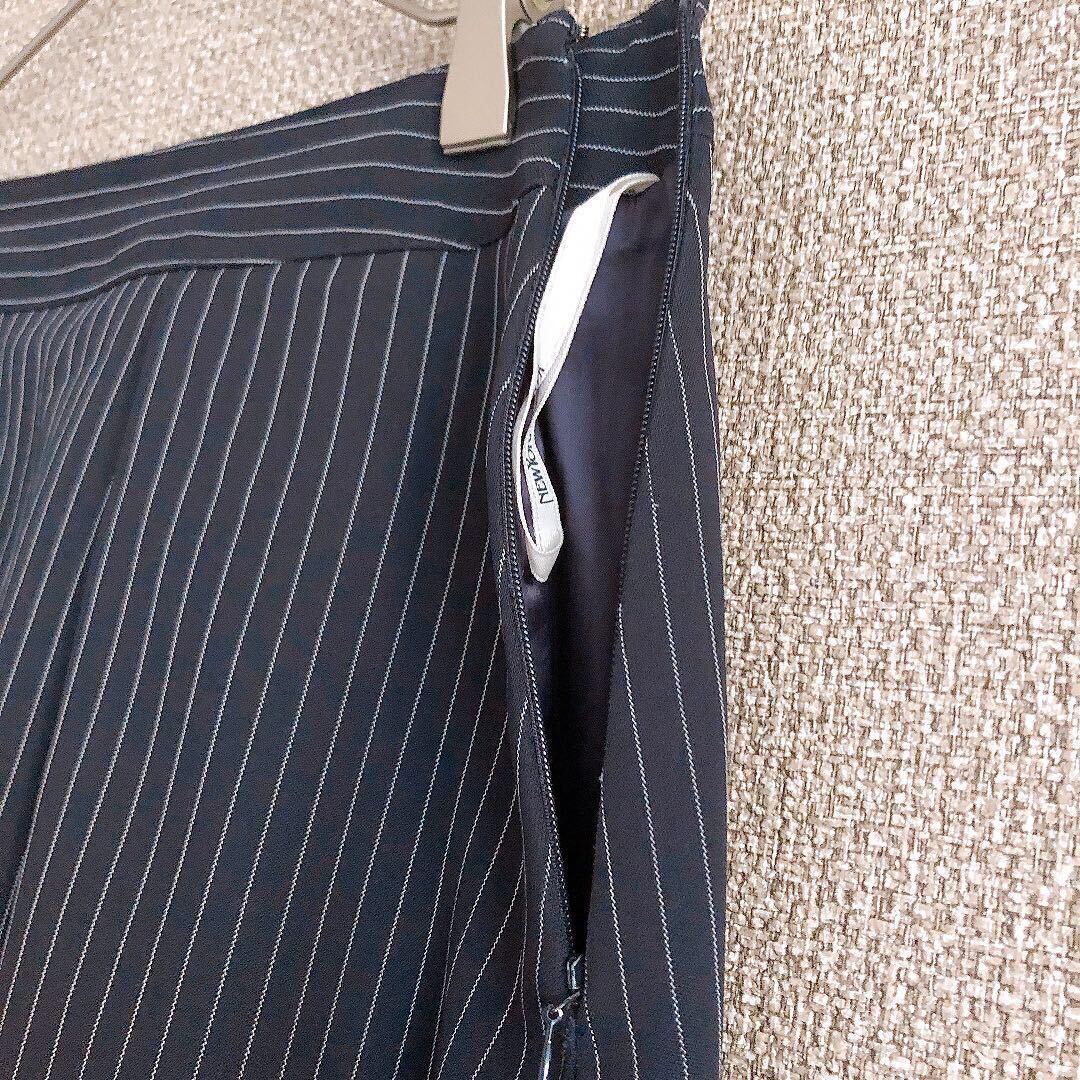 NEWYORKERの美しいストライプ柄スカートです。色はネイビーで、