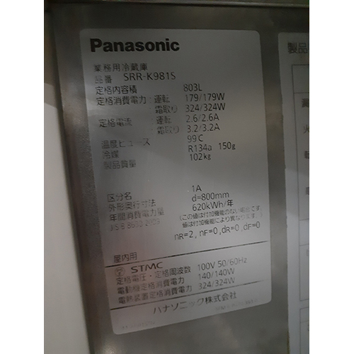 【業界最長1年保証】縦型冷蔵庫 パナソニック(Panasonic) SRR-K981S 業務用 中古/送料別途見積