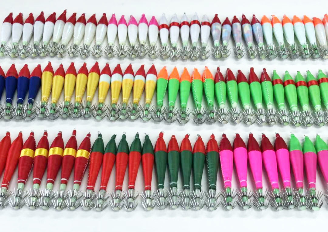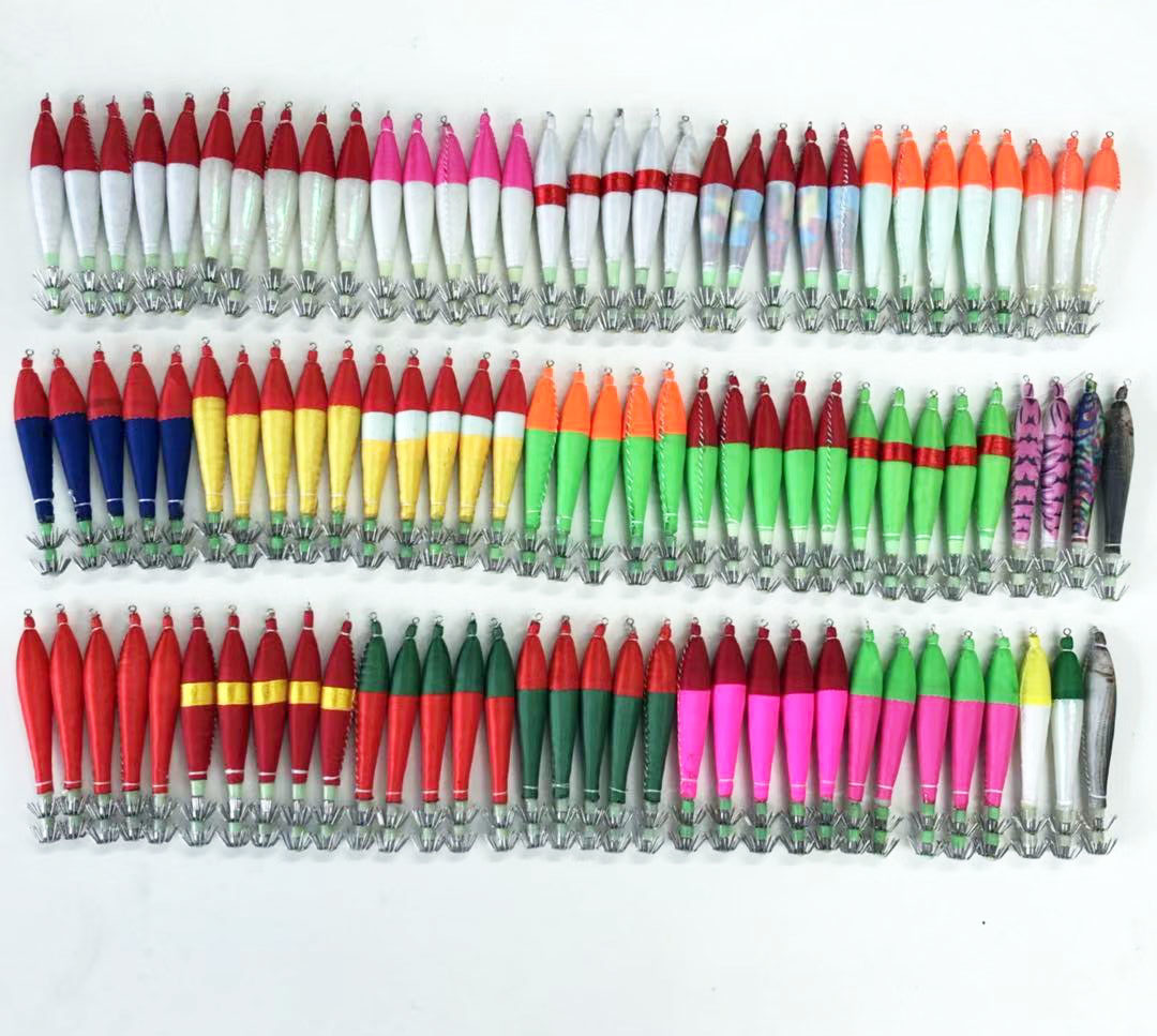 一枚目写真中の浮きスッテ100本の色柄見本です。