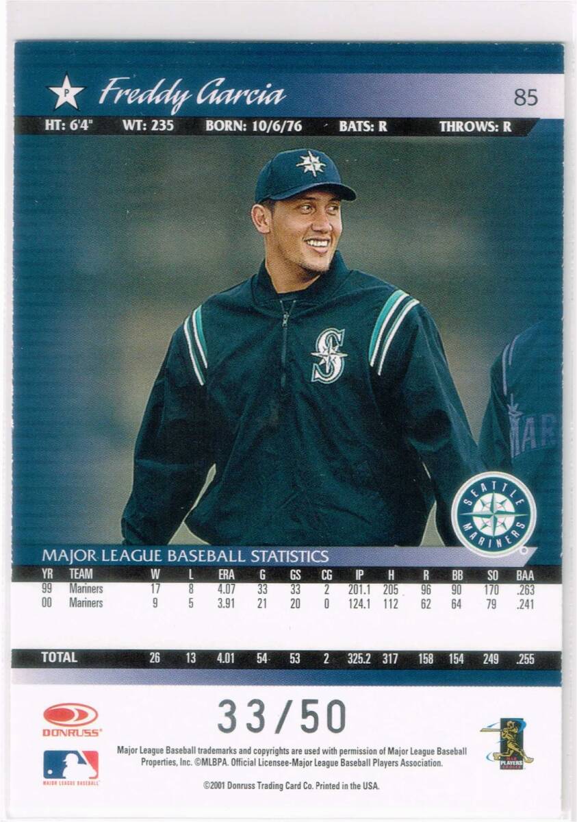MLB メジャーリーグ ベースボールカード の 2004 Donruss Timelines Recollection Collection Buy Back Autograph Freddy Garcia シリアルナンバー 33/50 です。 終活のため、コレクションとして長年保管していたものを出品いたします。思い入れがあるカードですので大切にしてくださる方のお手もとに行くことを願っております。 サイズは90mm × 63mmです。 カードは入手後スリーブ、トップローダーに入れて暗所にて保管しております。一般的な常識の範囲内で保管をしておりました。その他初期傷や経年による自然劣化などはご容赦ください。カードの両面の画像を掲載しておりますのでご確認ください。 当方、喫煙者はおりません。 その他、何かご質問がございましたらお問合わせください。 | |