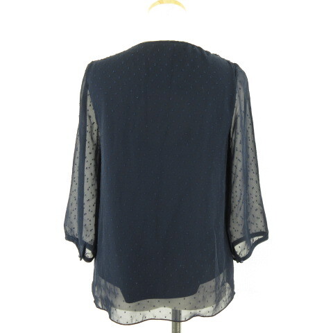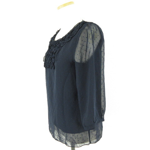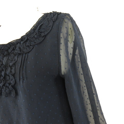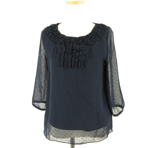 ナチュラルネーム Natural name カットソー フリル 七分袖 ドット 紺 M *A132 レディース