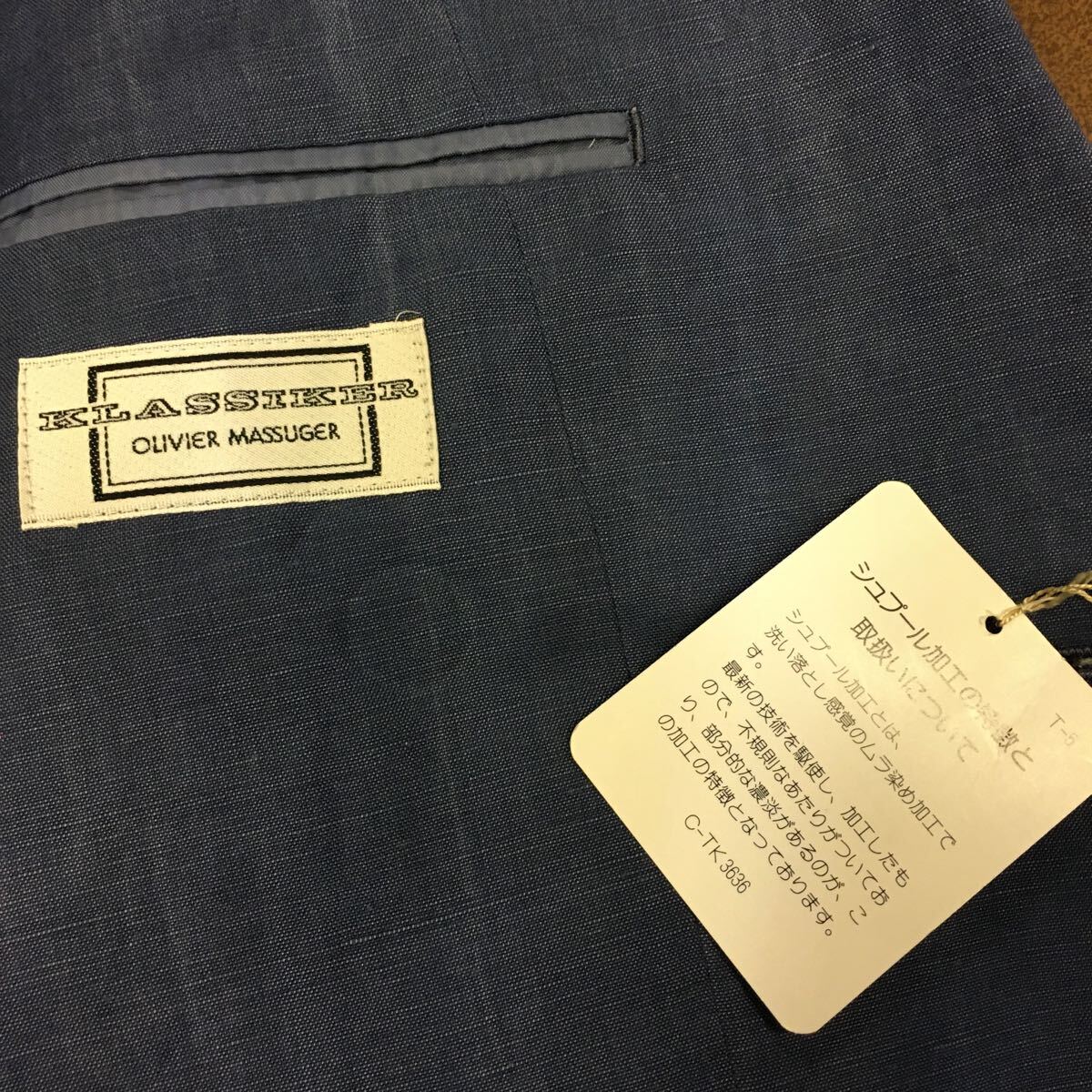 ブルー系サファイアブルーカラーの希少なシュプール加工のオシャレカラーと素材感はデザイナーブランドのヴィンテージ感が漂っています