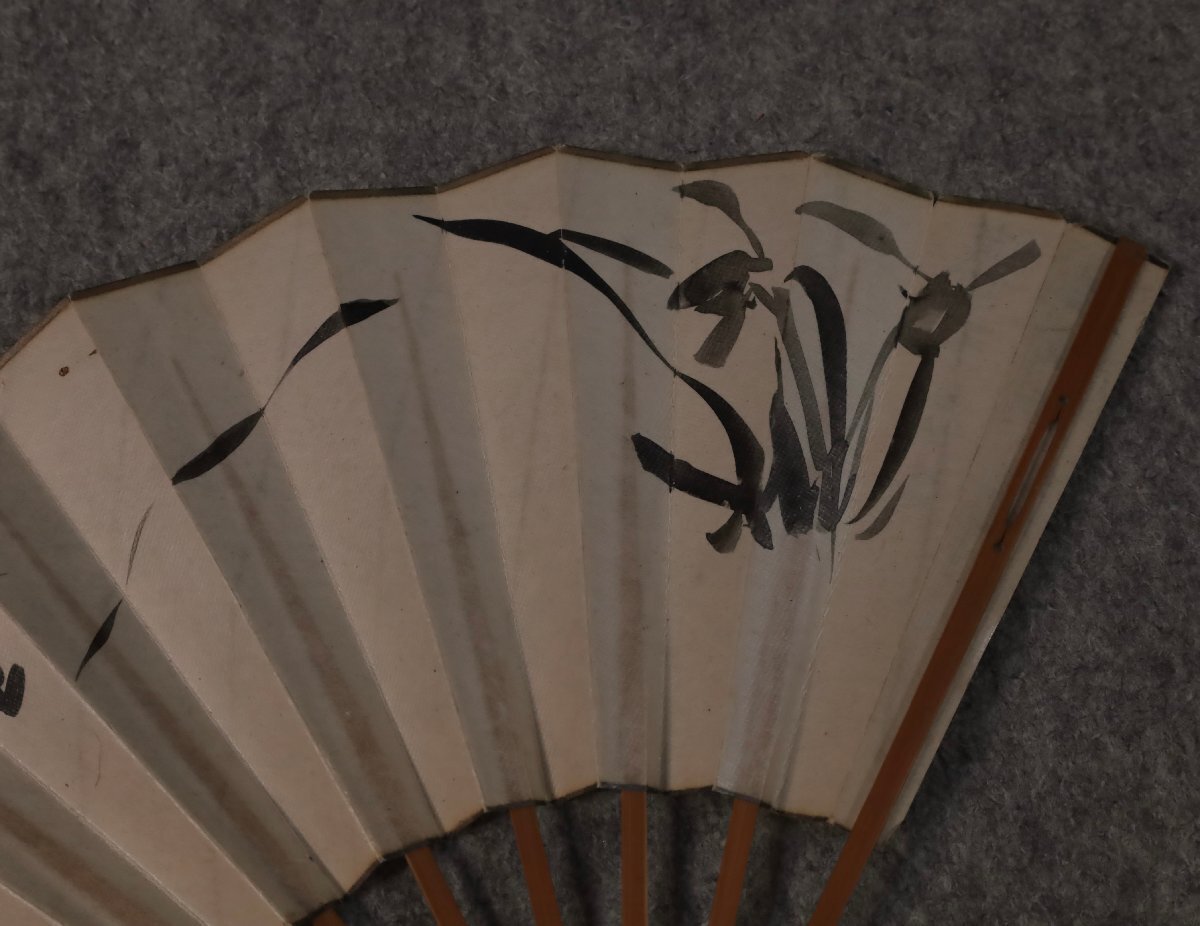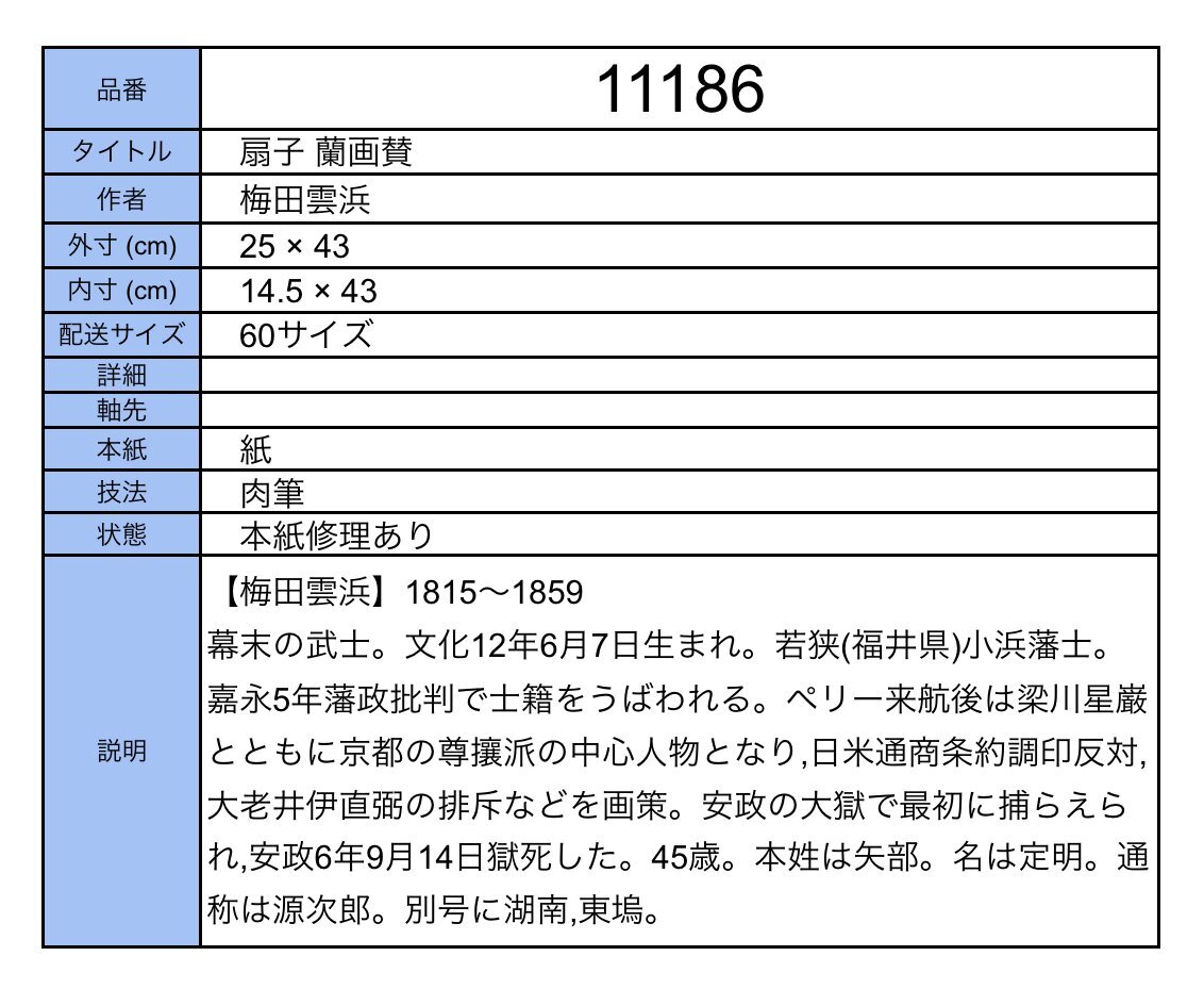 【模写】吉】11186 梅田雲浜 扇子 蘭画賛 若狭小浜藩士 尊攘派 武士 福井県 書家 茶掛け 茶道具 中国画 掛軸 掛け軸 骨董品