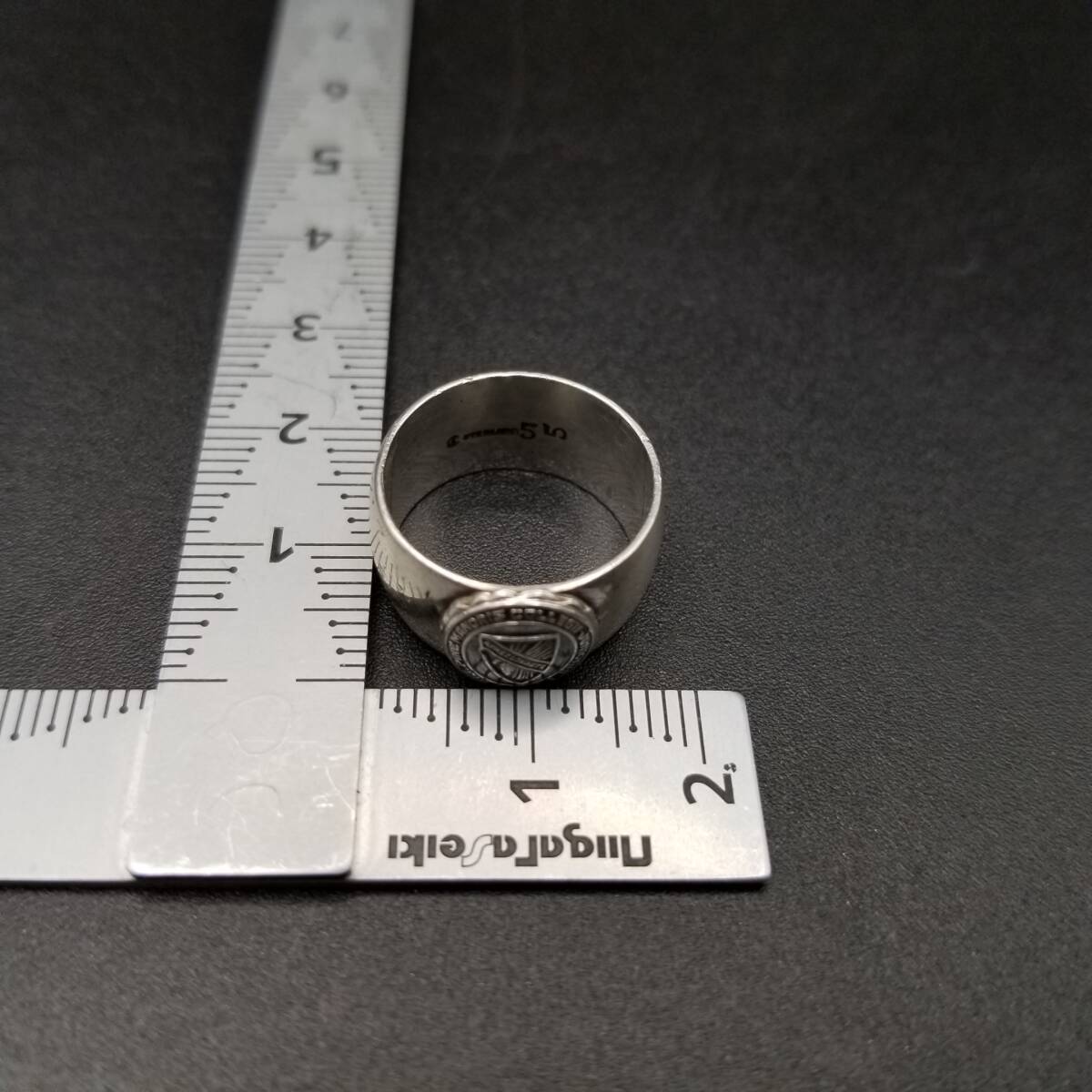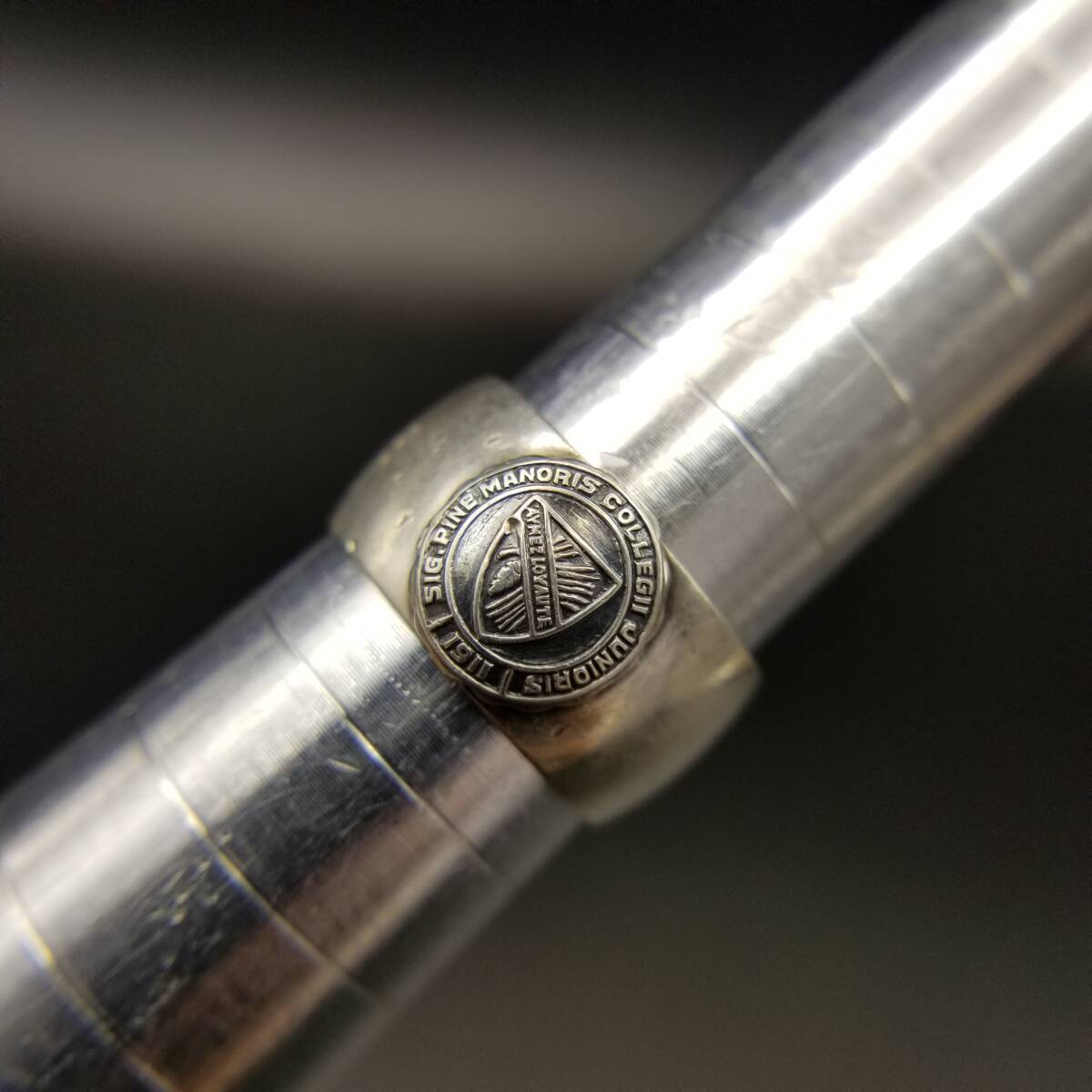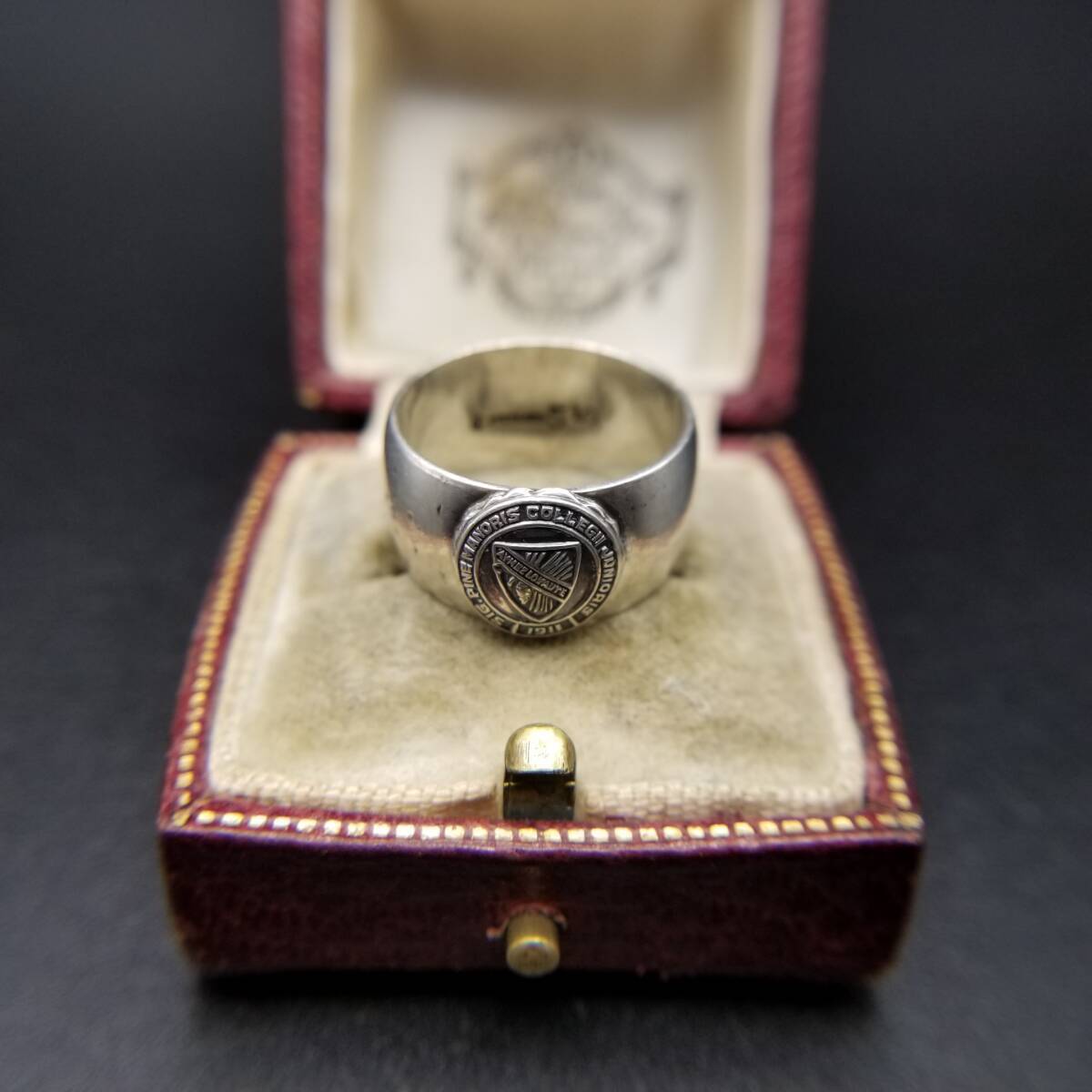 米国 ヴィンテージ カレッジリング Pine Manor College 紋章 シグネット 925 シルバー バンドリング 指輪 銀 レディース メンズ R13-F