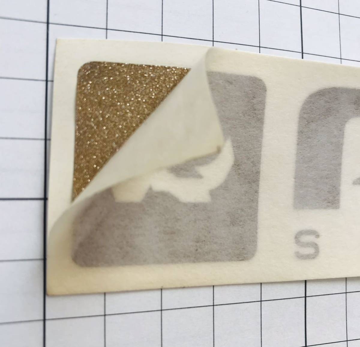 ・色はメタリックゴールドで、文字だけ残るタイプのステッカーです。